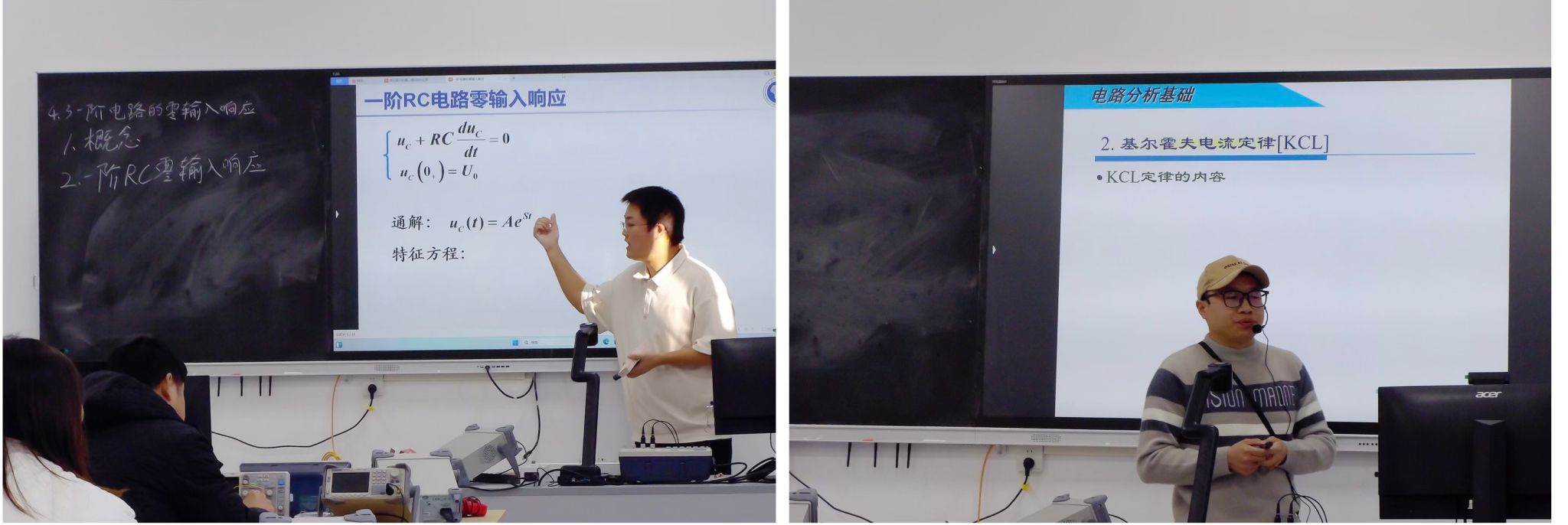 11月27日,第四期主讲人为刘文臣老师和蒋勇老师。刘老师讲授内容——一阶电路的零输入响应,通过日常生活中的两个例子——“水池放水”和“手机放电”引出授课重点,采用设问题、埋伏笔等方式串联知识,促进了学生对知识的理解与掌握。蒋老师讲授内容——基尔霍夫定理,支点、回路等电路知识引出授课主题,采用Flash动画辅助教学。授课过程中,两位老师的教学环节多采用提问、类比的形式,能有效提升学生的课堂参与度。