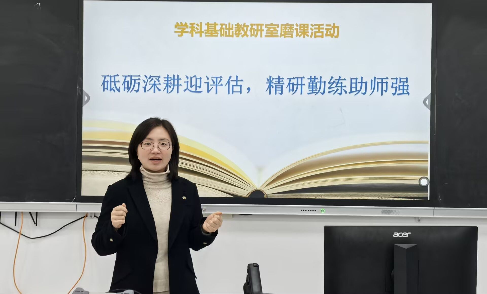 为切实提升青年教师教学水平,优化课堂教学结构,落实课堂教学改革,高质量迎接本科教学评估,学科基础教研室组织开展了四期磨课活动,贯穿整个学期。活动由学科基础教研室主任张媛教授主持,教研室全体教师观摩交流。
