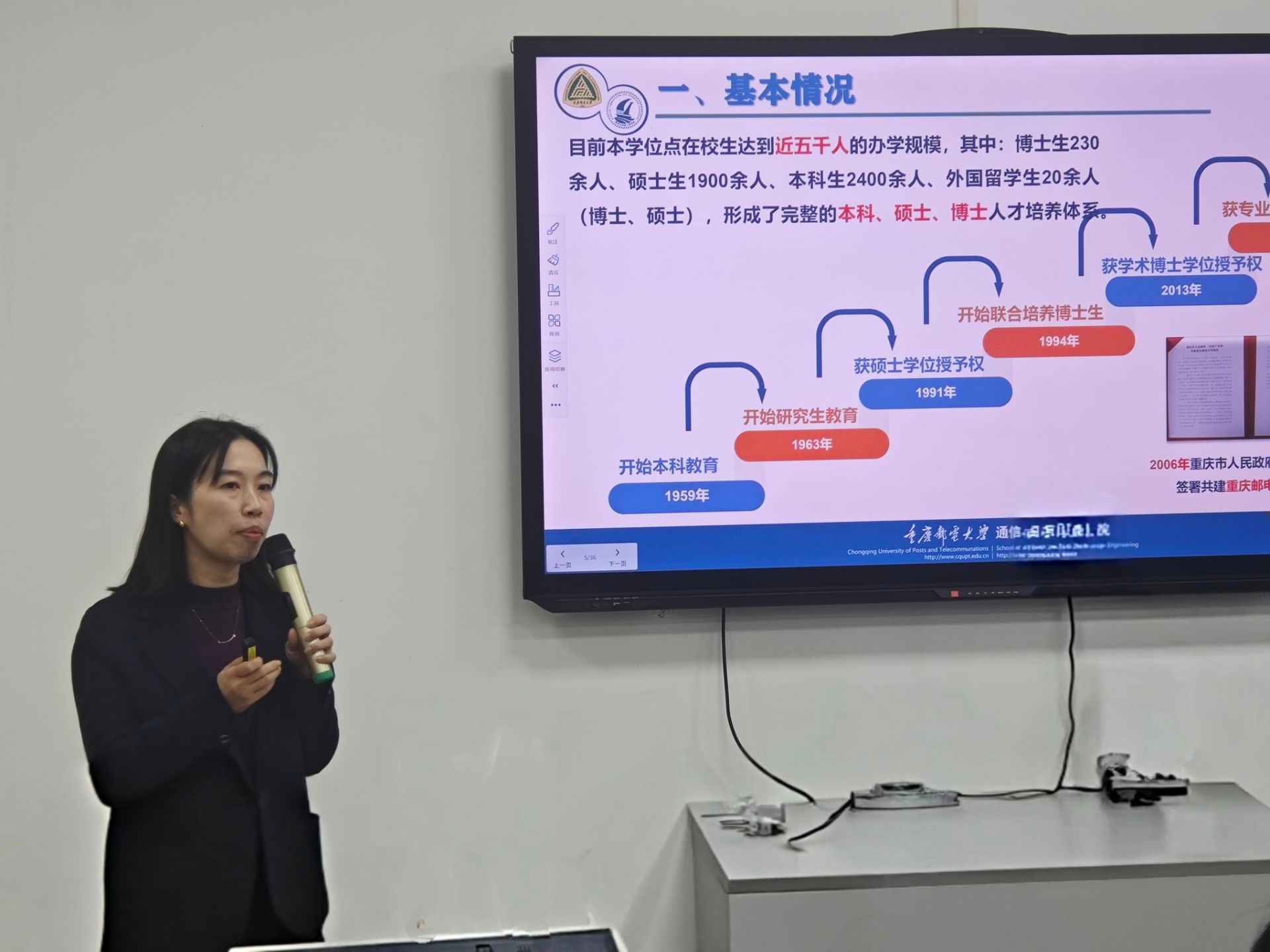 专业帮扶会议结束后,黄晓舸副院长针对我院考研学生开展了考研宣讲。她系统剖析了当前研究生招生考试的整体形势,并分享了院校选择的科学策略。在互动答疑环节,黄院长耐心解答了学生提出的各类问题,同时鼓励同学们保持积极备考心态,科学规划复习进程。通过分享,同学们对重庆邮电大学通信相关的硕士研究生专业的基本情况、招生政策有了全面的认识,也对考研的目标更加明确。
