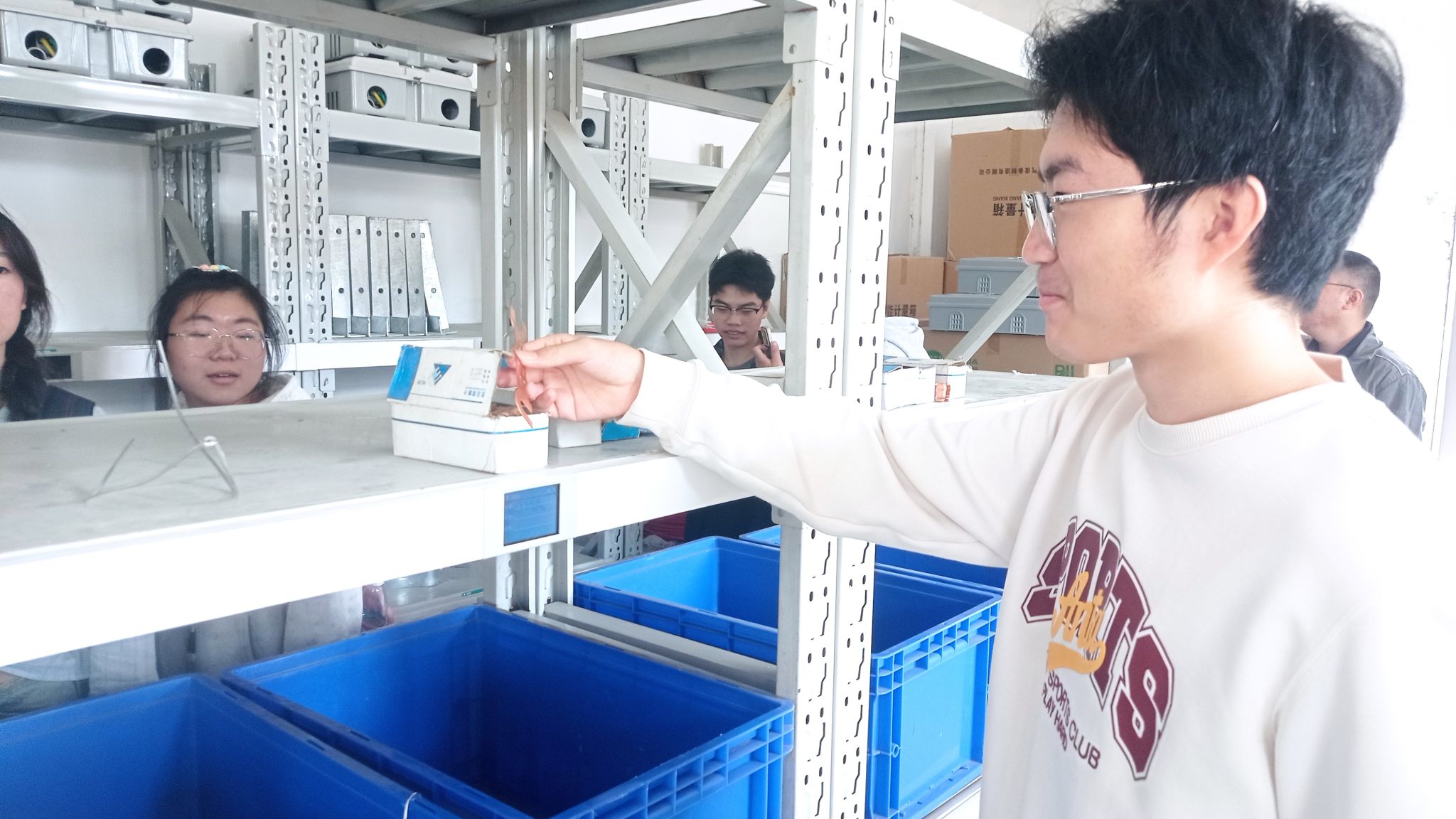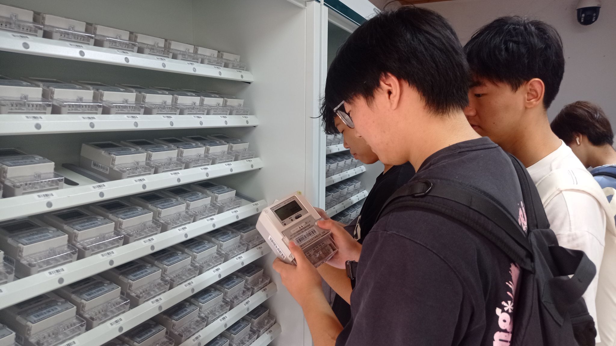 郭所长带同学们参观“智能物料仓库”,并耐心讲到:在智能仓库物料领用环节,每次物料出库采用无纸化清单模式,以便后期查阅和核对,业务办理更加高效,管理更加合规。在安全工器具领用出入库环节,对安全工器具进行实物ID赋码,实现精确追溯及全寿命周期管理,实现库存数据的实时更新、智能预警,远程管理降低人工成本80%。