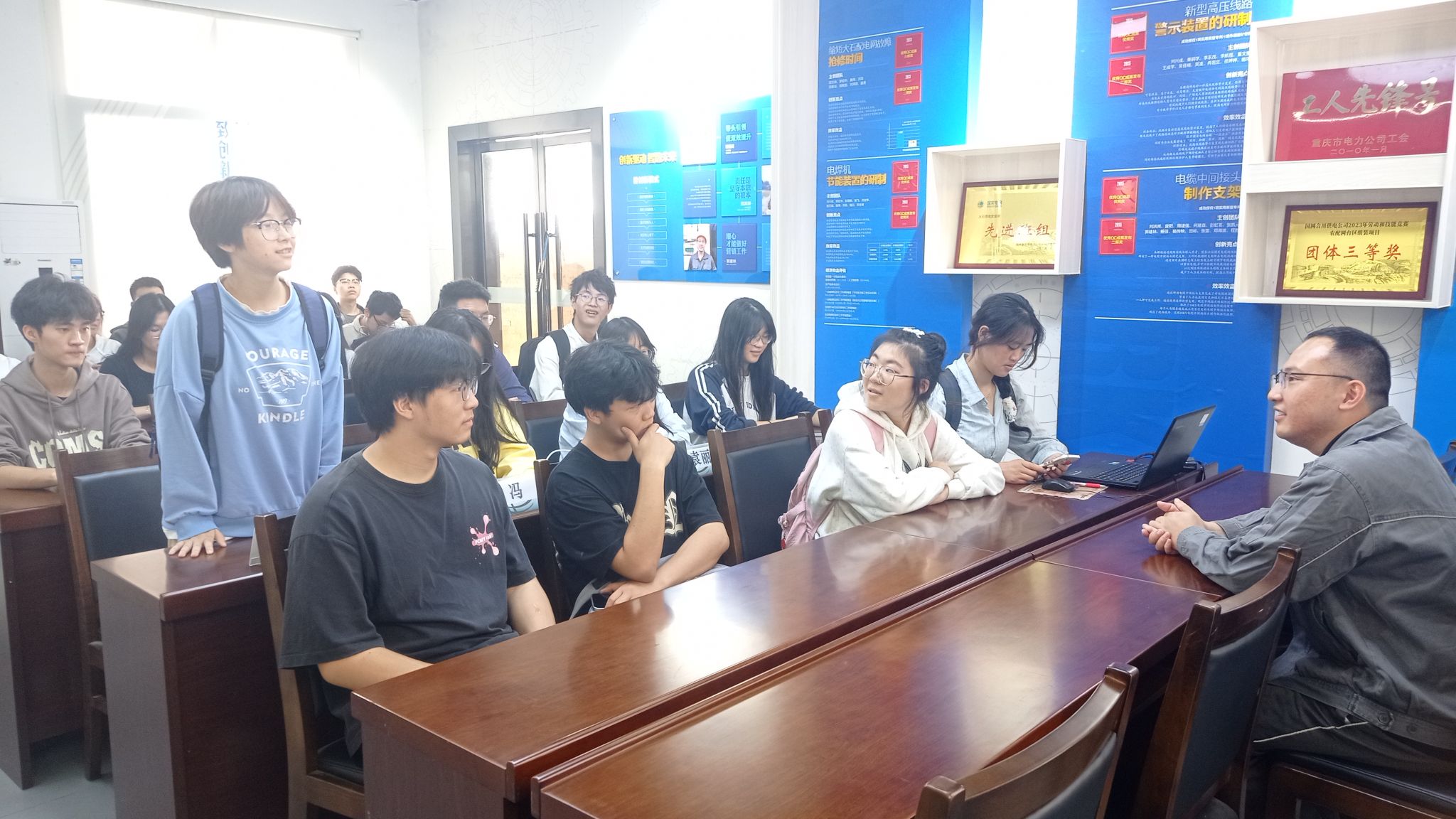 郭所长与同学们在大石供电所党建会议室进行座谈,耐心回答同学们提出的关于智慧电网、智能物料仓库、就业实习、等问题。