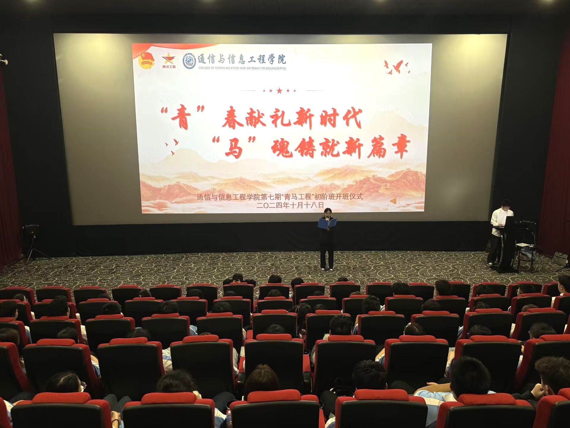 为培养一批具有坚定理想信念、较高理论素养和突出实践能力的青年马克思主义者,通信与信息工程学院于2024年10月18日16点30分,在万画影城四号教学影厅成功举办了第七期“青马工程”之“青春献礼新时代,马魂铸就新篇章”初阶班开班仪式。