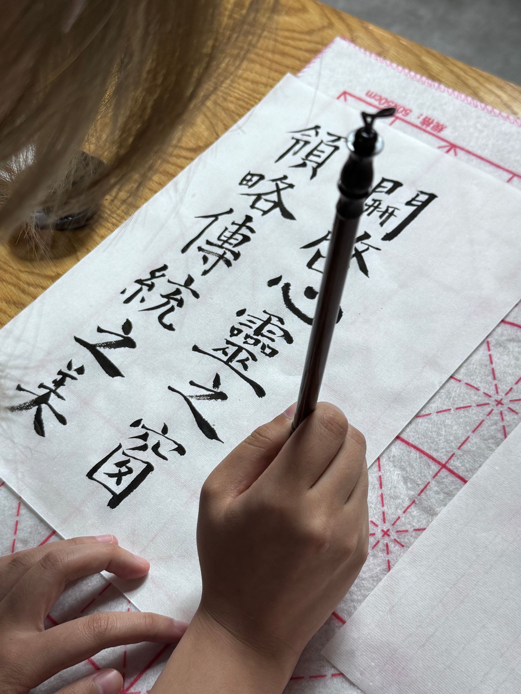 书法是中国传统文化的核心艺术之一。同学们先是通过赏析《兰亭集序》、《洛神赋》等名家之作,领略了书法之美,感受其艺术风格、笔法技巧,提升审美。再观看《祭侄文稿》的纪录片,深入了解作品背后故事、文化价值,同学们都感触颇深,纷纷挥洒着笔墨,书写出心中豪情,体会着传统书法的美妙韵味。