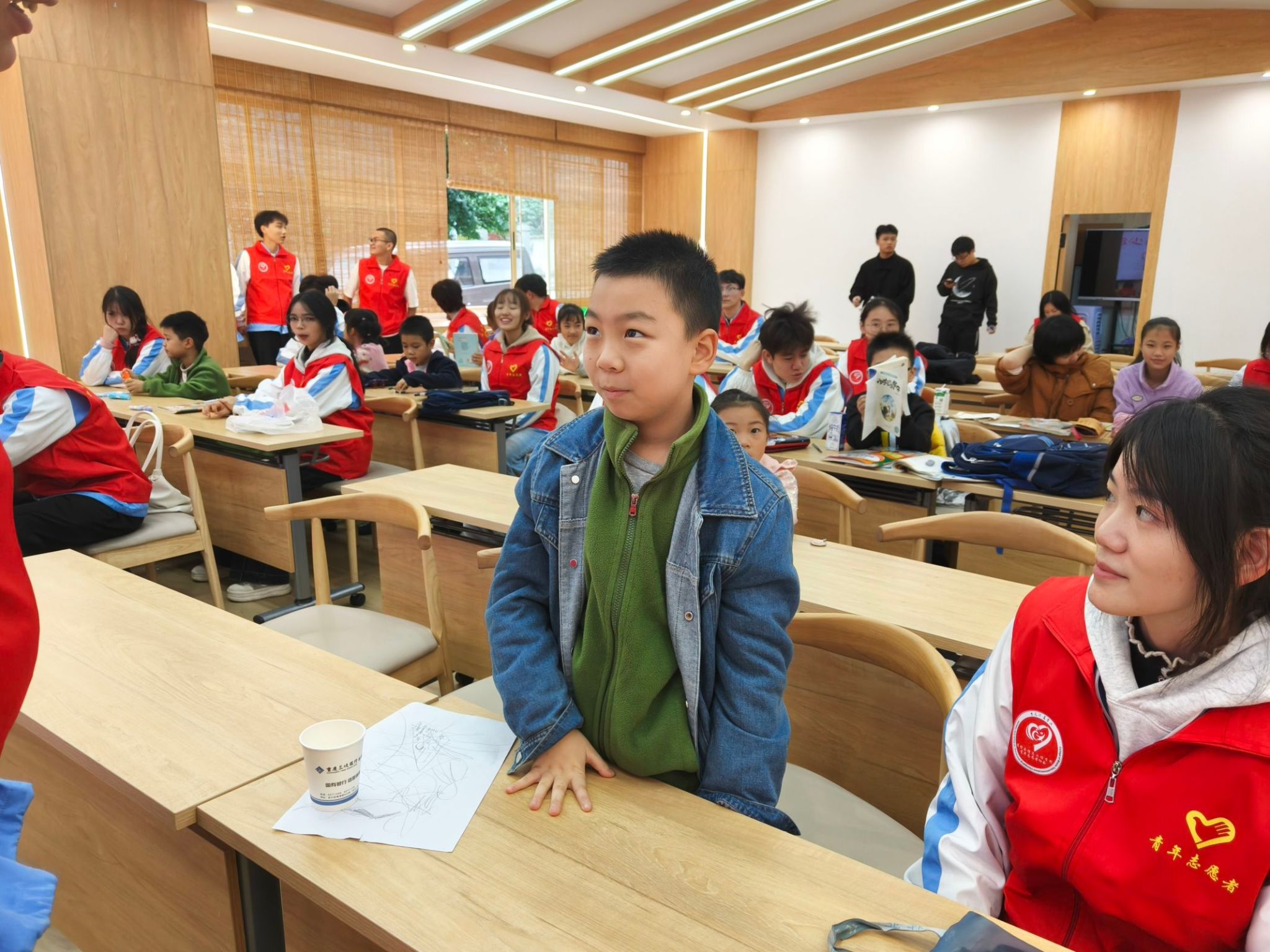 在“绘画与阅读分享”的环节中,孩子们纷纷拿出自己心爱的书籍,他们专注的看着故事书,沉浸在书中的奇妙世界里。在互动交流中,孩子们积极提问、发表看法,在阅读问题中,有的提出对故事结局的不同想法,有的分享自己类似的经历。志愿者们对孩子们的分享进行点评与引导,帮助他们更好地理解书中深意,鼓励他们继续保持阅读的好习惯。