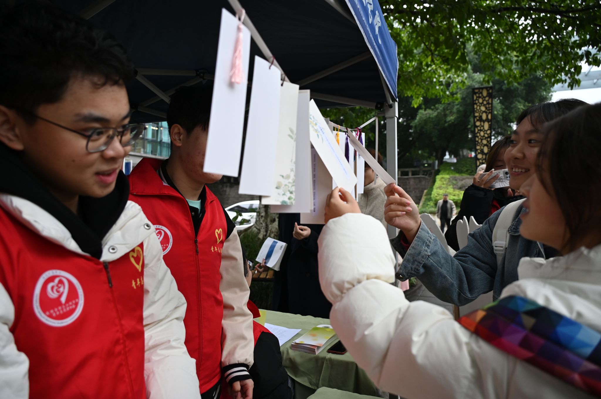 活动之初,“猜花名”游戏率先点燃了现场的激情。同学们满怀期待地抽取书签,每一张书签上都镌刻着一种花的花语,每一张书签都是一扇通往花卉情感世界的神秘之门。游戏启动瞬间,同学们便踊跃地摘取自己钟情的书签,交给工作人员开启这场智慧与情感交织的挑战。