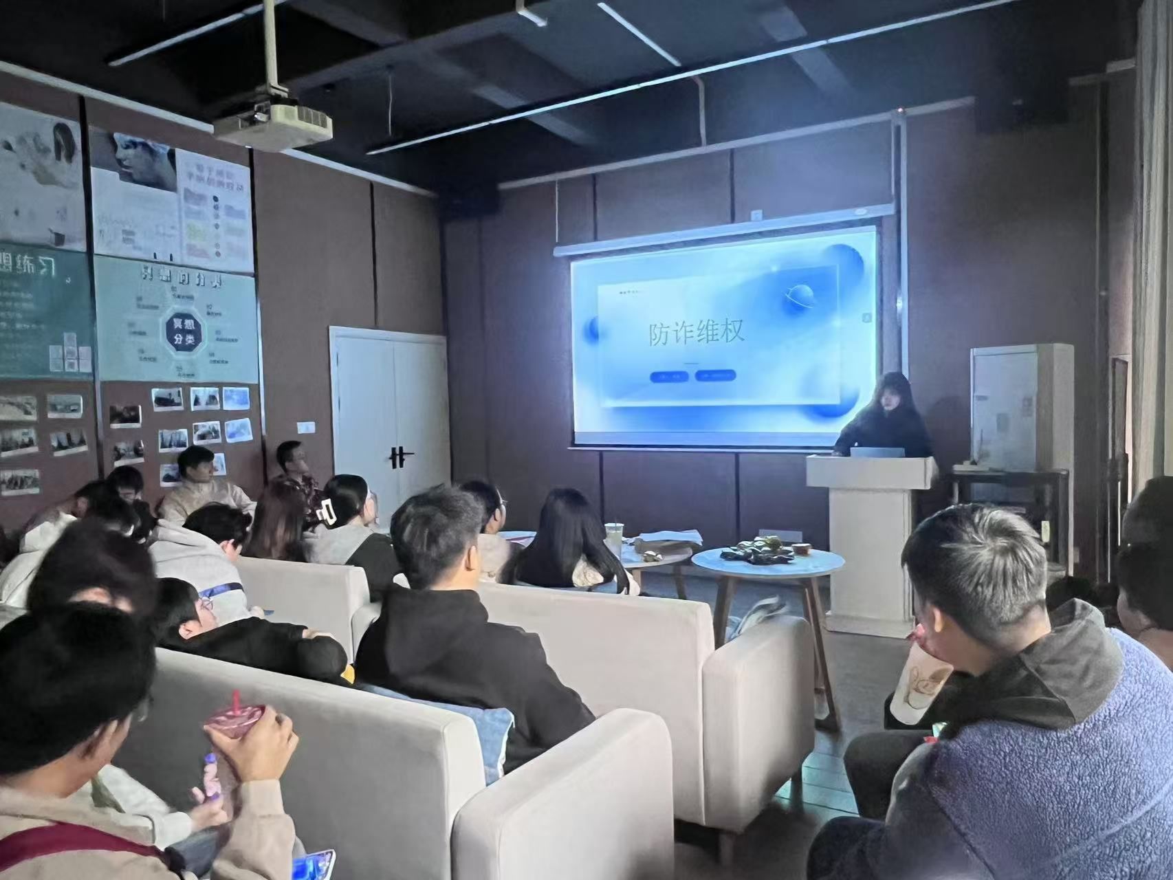 为提升班级团支部自身建设,建立特色团支部,提升团支部素质,2024年11月22日12:30,2024级通信工程专升本07支部在鱼城书院空格影音室进行了以“筑起防诈长城,守护维权之路”为主题完满超级团支部活动。