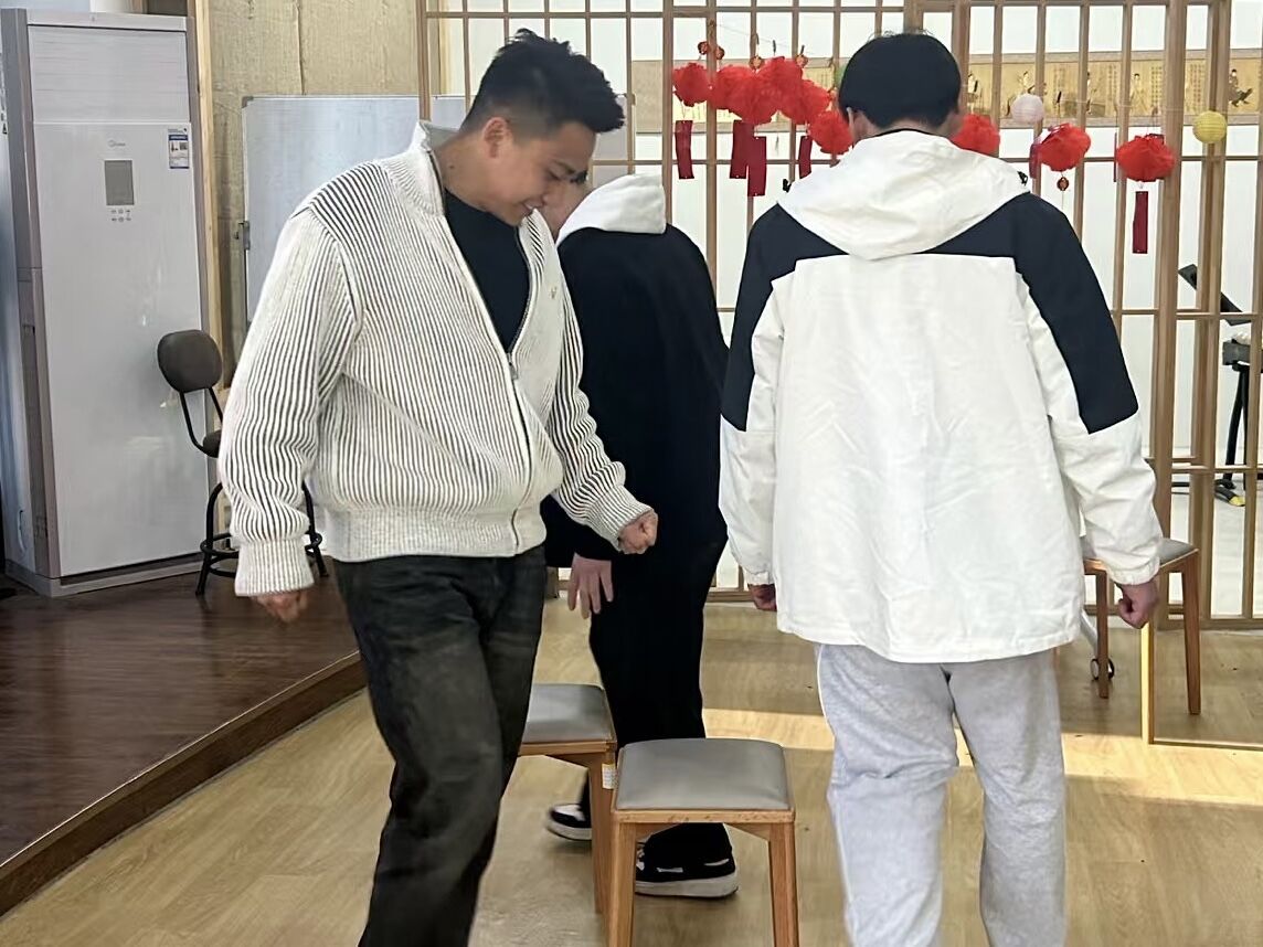 节目表演后,我们开始活动预热小游戏:抢板凳游戏环节,音乐响起,同学们围着板凳走动,音乐骤停便争抢,未抢到的同学出局,现场欢声笑语不断。随后的猜歌名游戏中,主持人播放传统文化韵味的歌曲片段,同学们积极抢答,在趣味里感受传统文化与音乐结合的独特魅力。