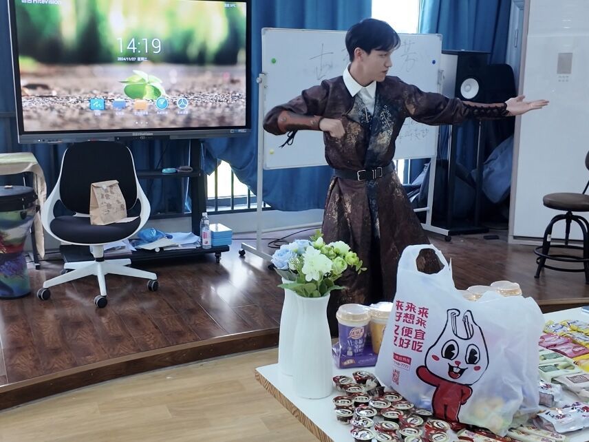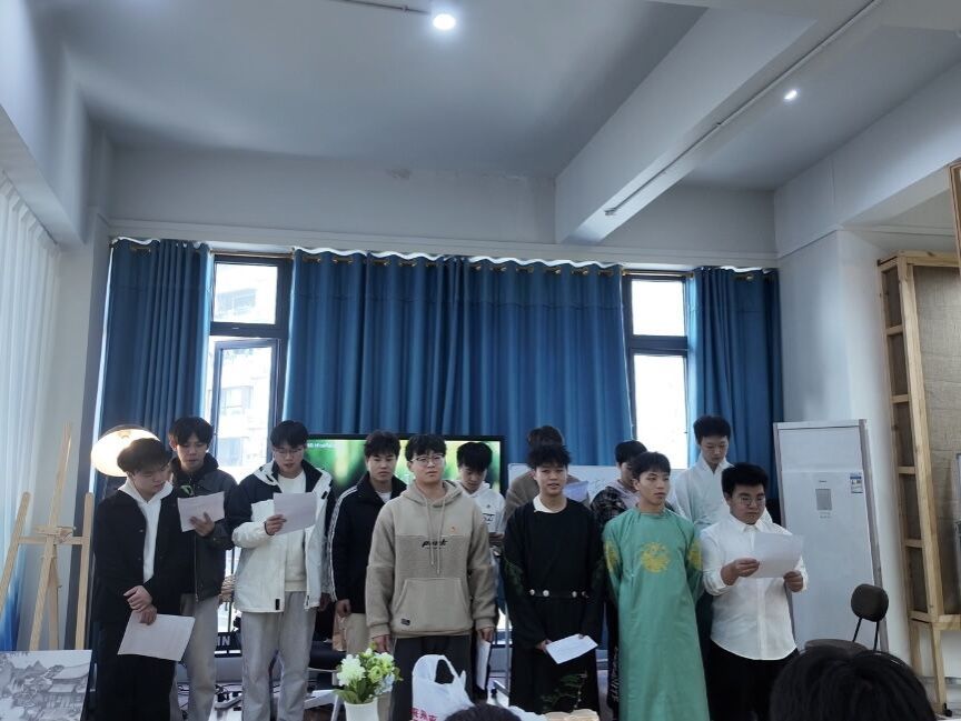活动开始由汉服雅展率先登场,汉服协会成员以及班上体验汉服的同学身着精美汉服,宛如古典佳人,尽显传统服饰文化魅力。接着,诗歌朗诵《赤壁赋》、陈氏太极拳、古风吟唱等精彩节目一一呈现。同学们热情饱满、技艺精湛。