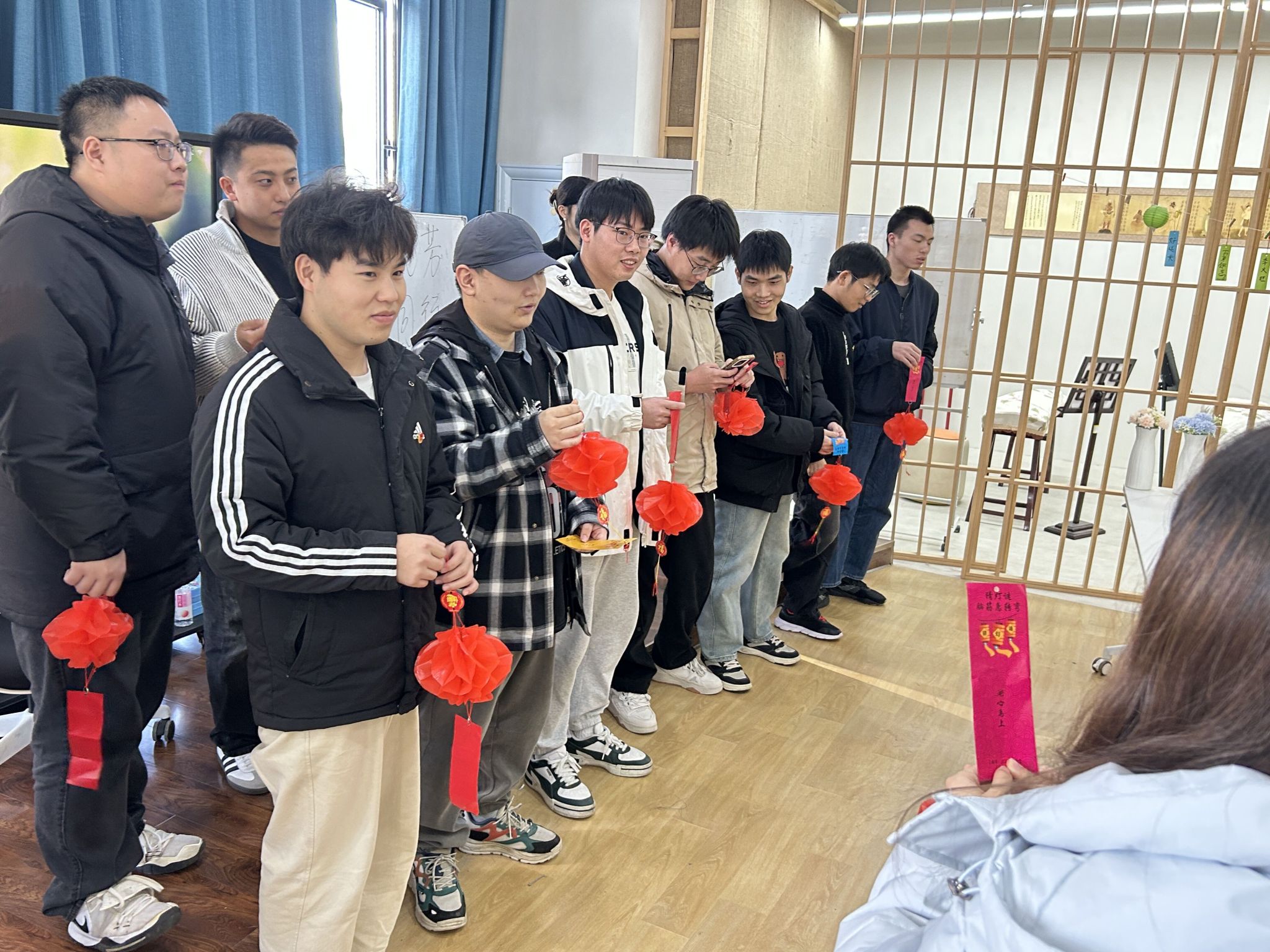 猜灯谜环节开始,现场张灯结彩,谜面涵盖古诗词名句、历史典故等丰富内容。同学们或独自思考,或聚在一起讨论,在这过程中深刻体会传统文化的深厚底蕴,现场气氛活跃,充满欢声笑语。