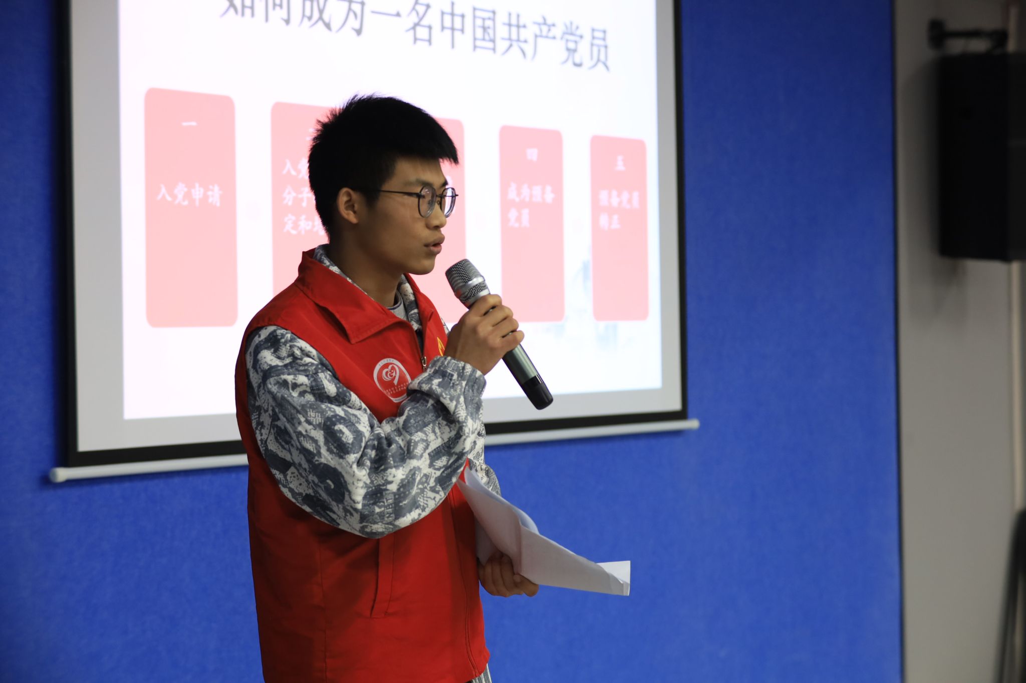 缅怀先烈,传承精神。为纪念11月27日烈士殉难75周年这特殊的一天,两位主持人带领在场的同学们回顾英雄烈士们舍生忘死的英勇事迹,并以默哀3秒的方式缅怀红岩英烈,弘扬不朽的红岩精神。同学们怀着这份对党的无限敬意,陈顺同学详细介绍了入党流程,并针对入党相关事务进行了答疑解惑。