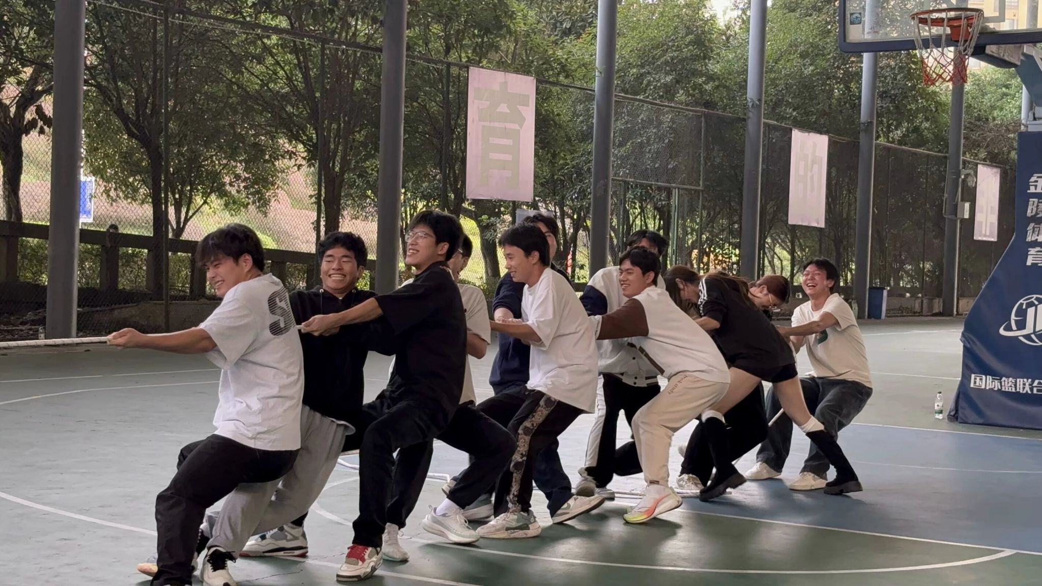 在最后这场游戏中,同学们需要围成一个大圈,每人握住一根塑料杆。随着活动开始,大家迅速移动,确保手中的杆子不倒,同时去扶住前面一个人松开的杆子。整个团队默契配合,顺利完成了一次次的循环。最终,压祥拉队也再次取得胜利。