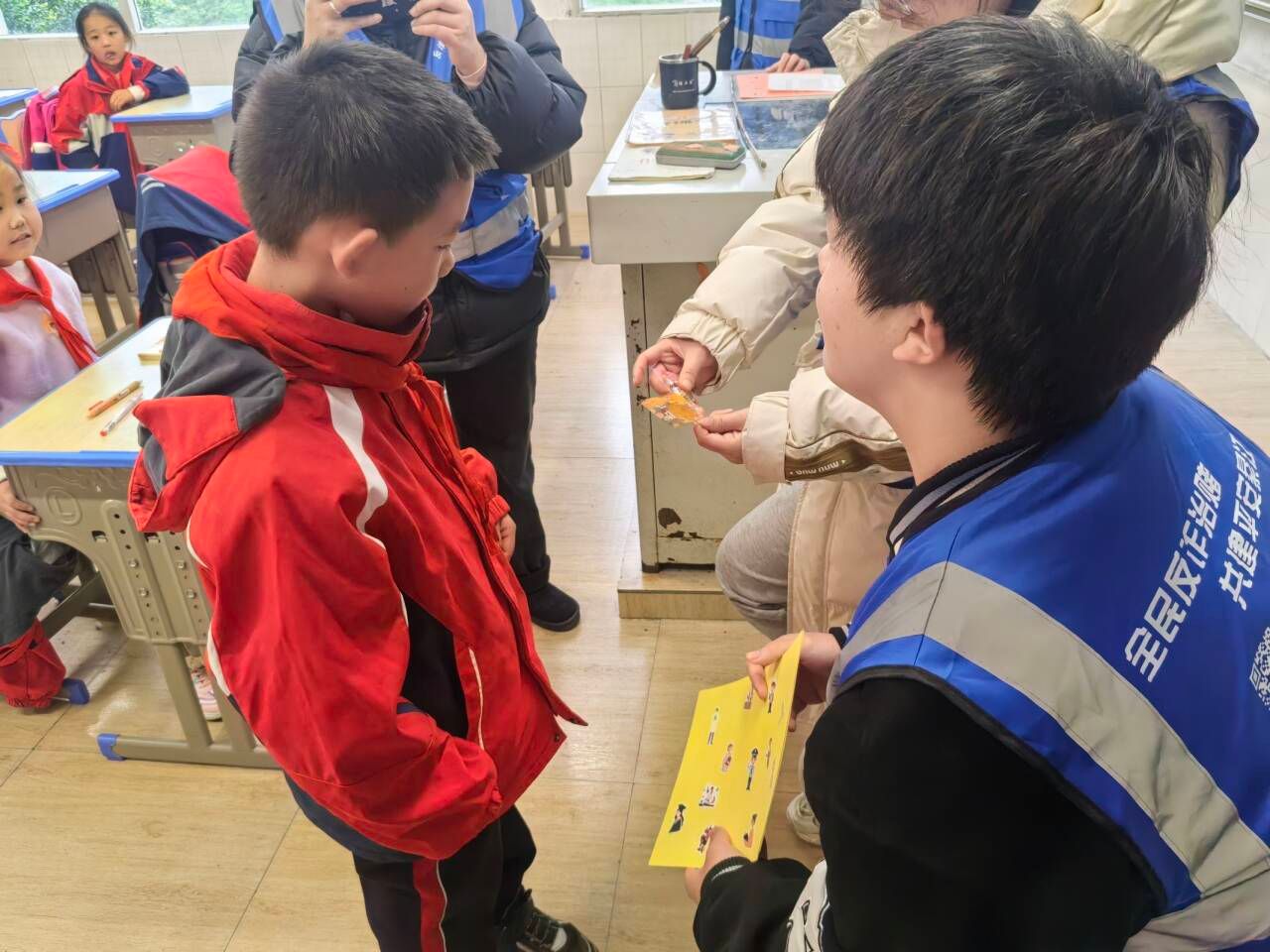 为了增强儿童的安全防范意识,提高自我保护的能力,同时避免拐骗儿童事件的发生,提升家长对儿童防拐骗安全教育的重视程度。2023级通信工程07支部携通信与信息工程学院飞鹰反诈志愿服务专项支队以及大数据学院青年志愿者协会于2024年12月9日开展了“智破诈骗迷局,共筑安全防线——儿童防拐骗宣传活动”。