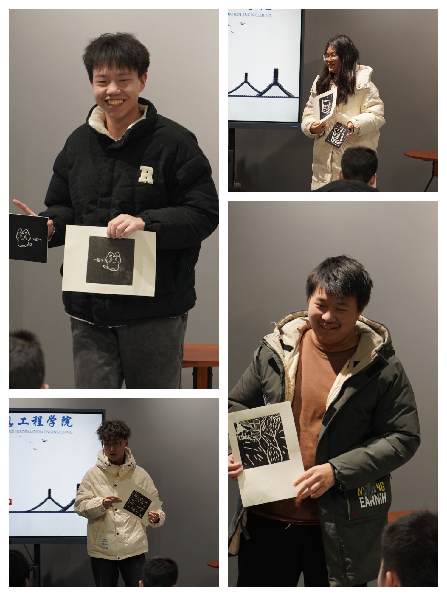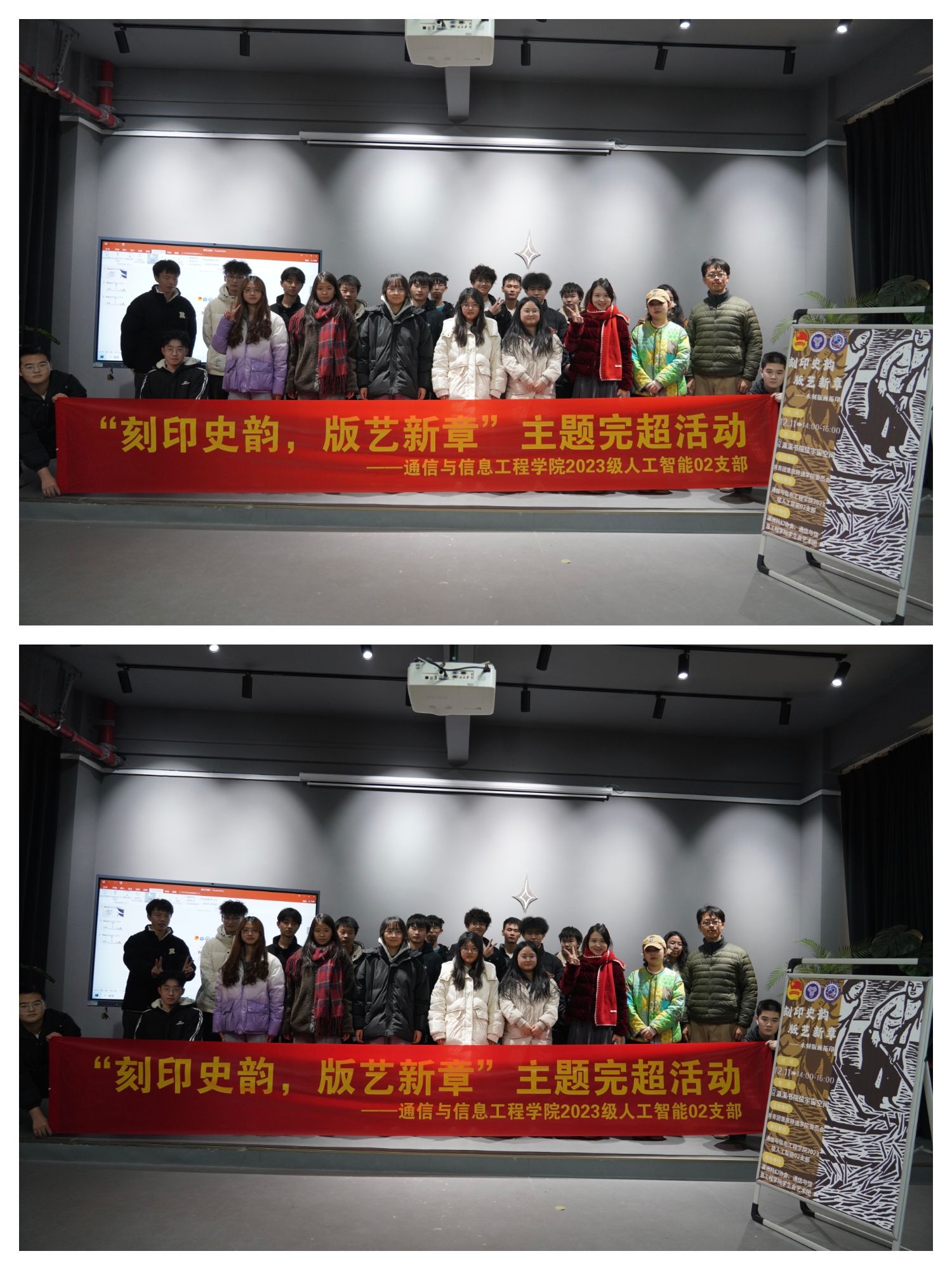 为挖掘传统艺术的深厚底蕴,传递版画艺术的独特魅力,通信与信息工程学院2023级人工智能02支部携瀛溪科幻社以及通信与信息工程学院学生会艺术团,于2024年12月11日14时在瀛溪书院弦宇宙空间开展了“刻印史韵,版艺新章”为主题的完超活动。