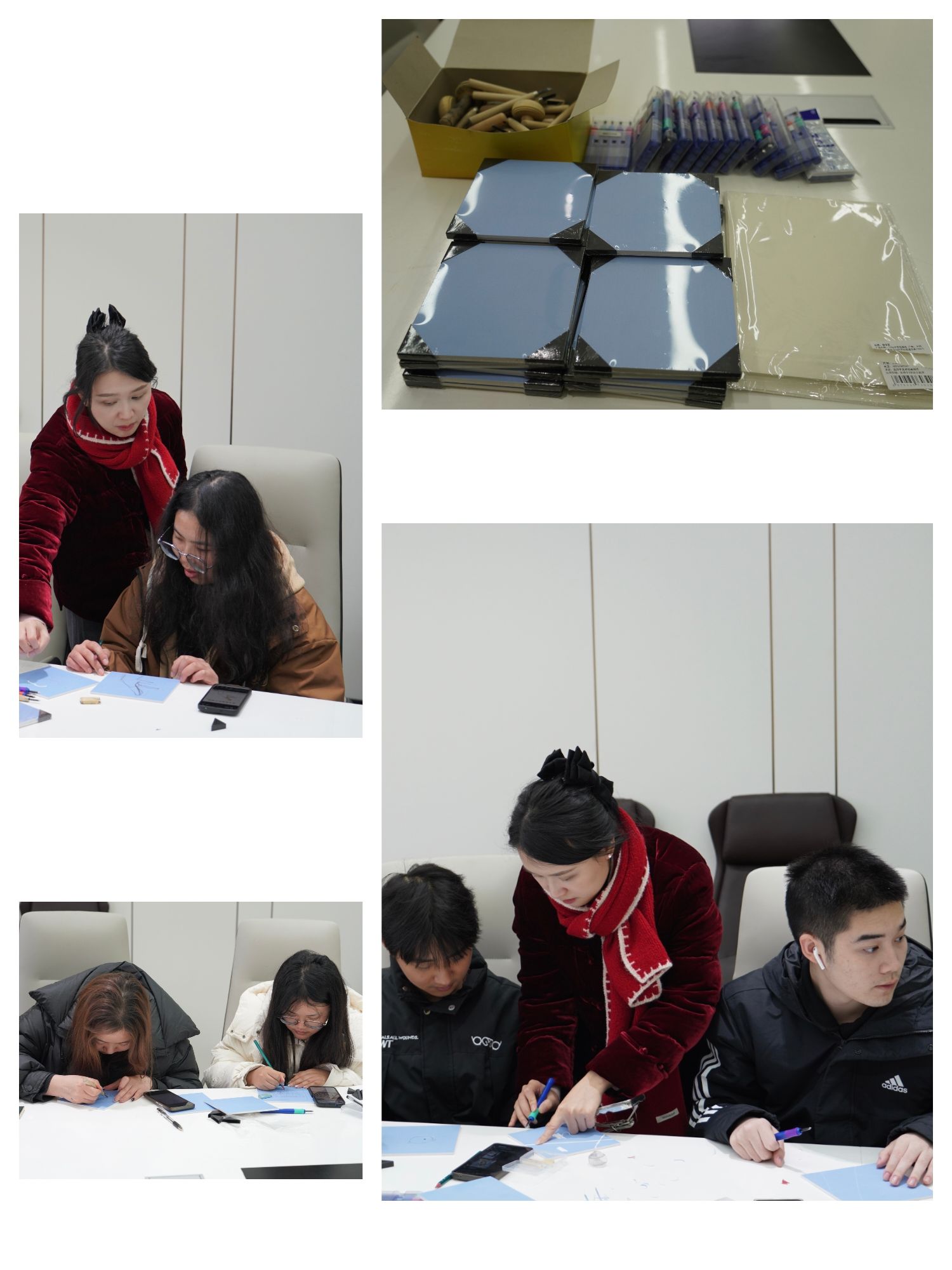 在王琎老师精彩讲解之后,活动进入到了实践环节。同学们怀揣着对版画艺术的深刻理解与敬意,纷纷拿起刻刀与木板,开启了属于他们的艺术创作之旅。只见刀锋在木板上轻轻划过,木屑如雪花般纷纷飞舞,每一笔每一划都倾注了同学们满满的热情与专注。他们或是眉头紧锁,认真思索着线条的走向;或是眼神坚定,果断地刻下心中的图案。在这个过程中,版画的艺术魅力在同学们的指尖悄然绽放,一块块平凡的木板逐渐被赋予了独特的生命与灵魂。