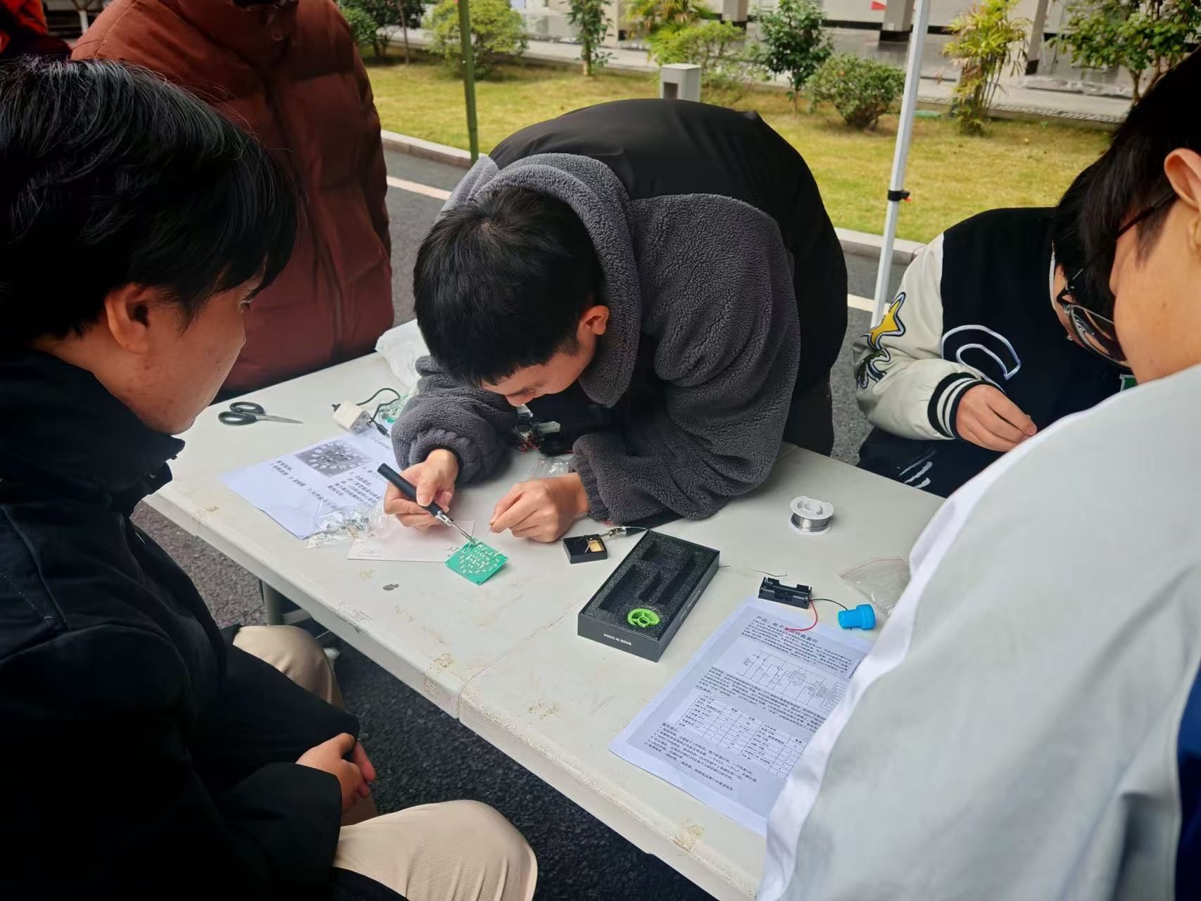 随后,经典的趣味投壶游戏与电路知识问答环节结合的互动体验将此次活动推向高潮。通过趣味游戏的形式,让同学们在欢声笑语中加深了对电路知识点的认识和理解,学会了许多基础的电路小知识。这种寓教于乐的方式,不仅提高了同学们的参与度,也使得学习这些知识点更加深入人心,让同学们深刻难忘。