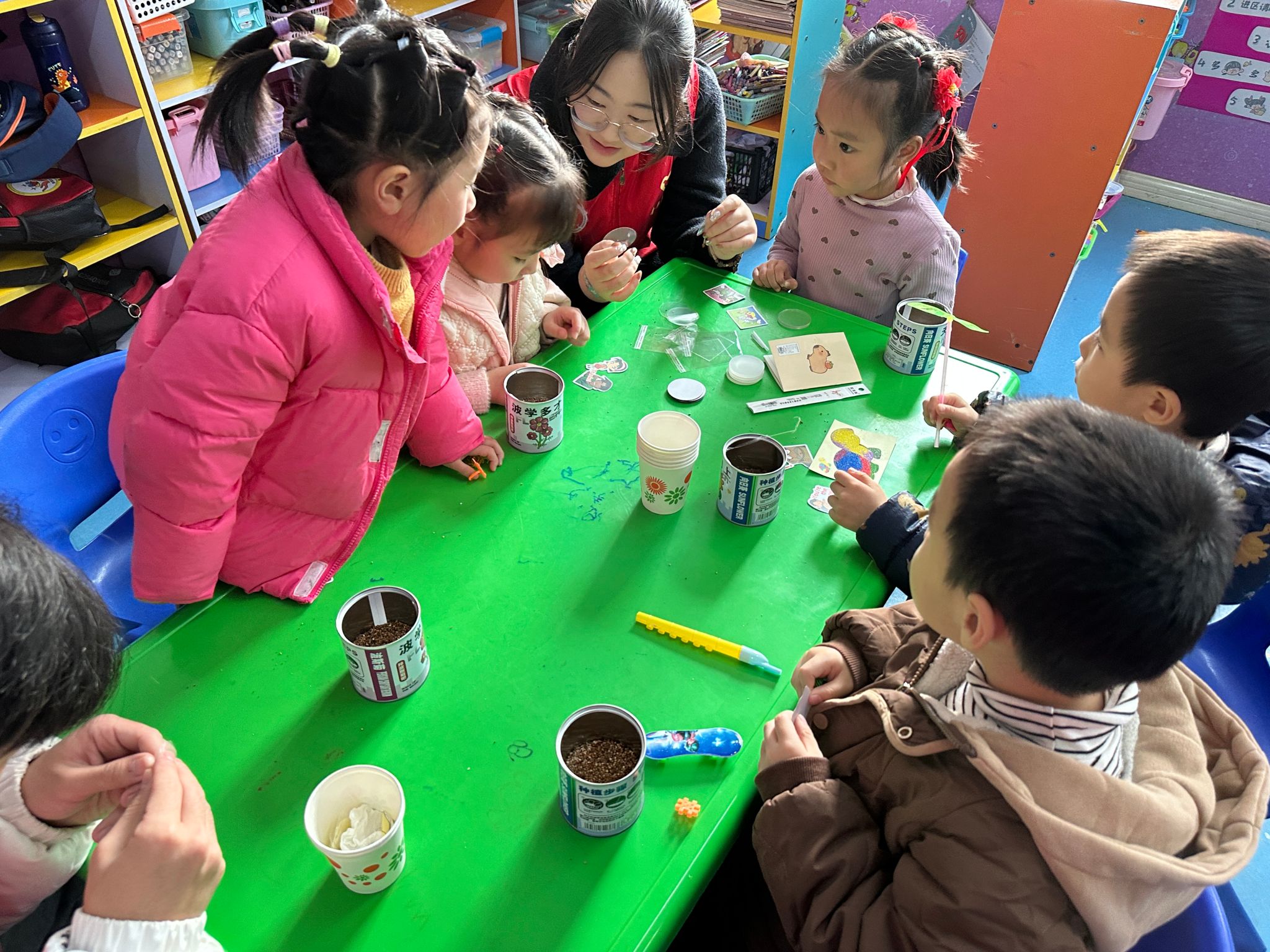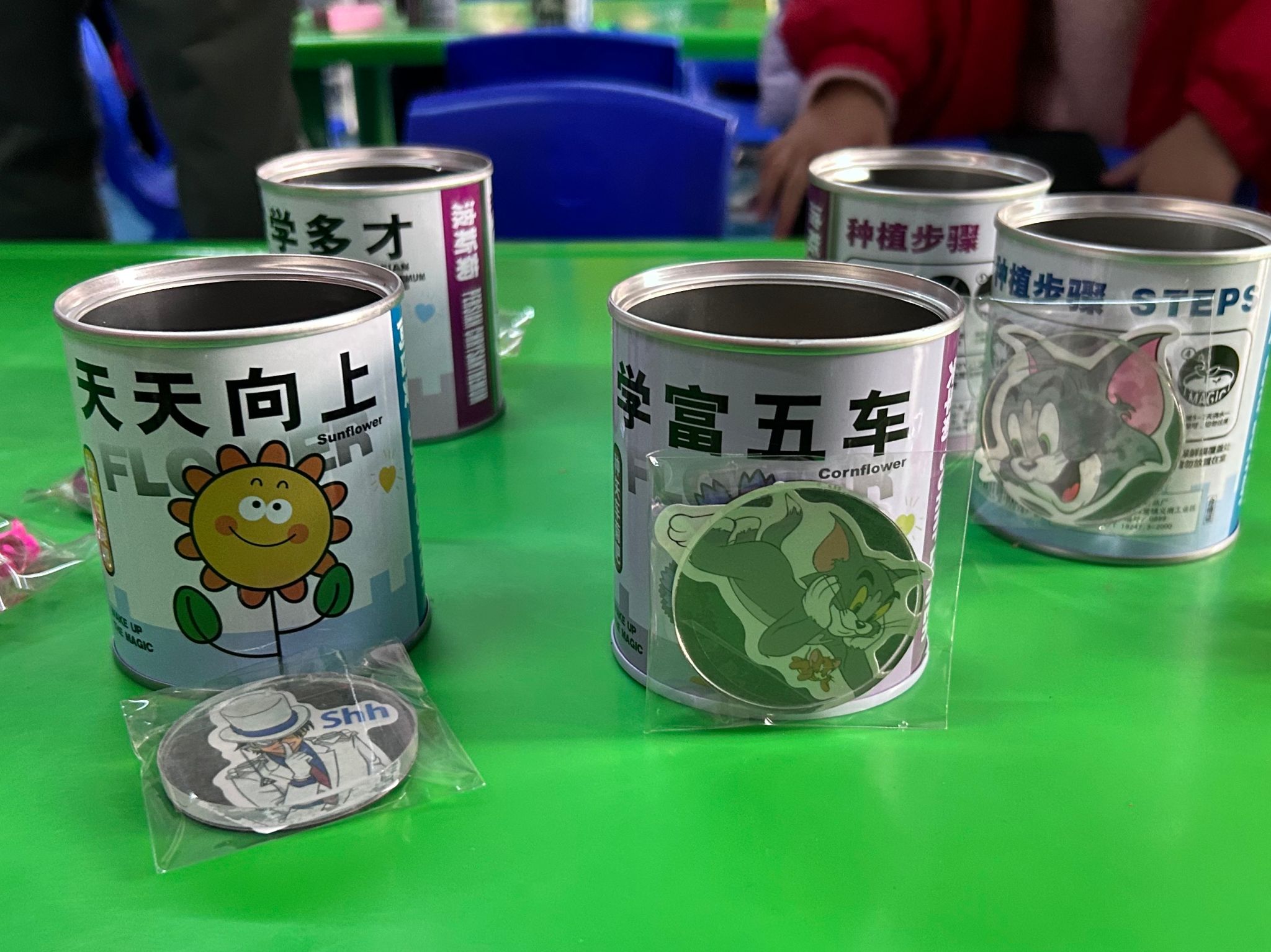 随后,种子梦想活动闪亮登场,志愿者们热情满满,他们提前精心准备了植物罐罐。考虑到罐罐打开易划手,志愿者们贴心地将其开好,在确保安全、避免弄伤小朋友的前提下,把罐罐分发给每一位小朋友。在志愿者们的耐心指导和帮助下,小朋友们亲手完成了植物种植的过程。他们小心翼翼地将种子埋入土壤,仿佛在种下一个个充满希望的梦想。