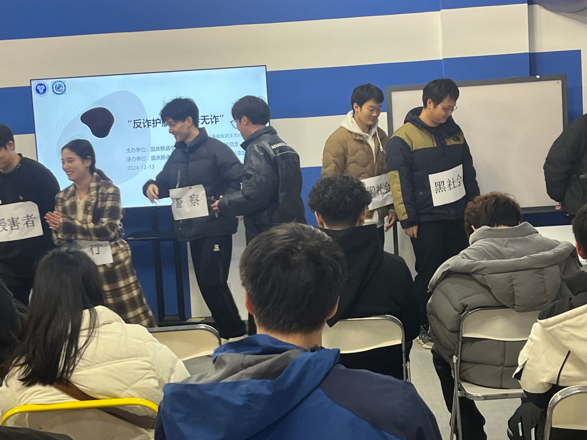 为提高师生反诈意识,营造安全和谐的校园环境,通信与信息工程学院2024级人工智能专升本06支部于2024年12月13日下午两点在天空书院青空朋辈畅谈室举办了一场反诈宣传活动,支部成员积极参与,活动反响热烈。