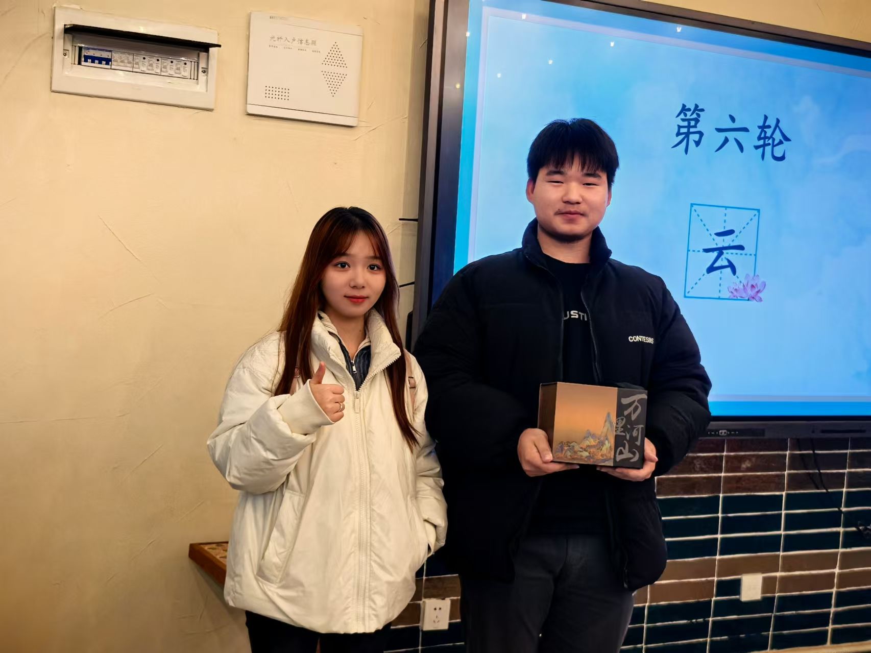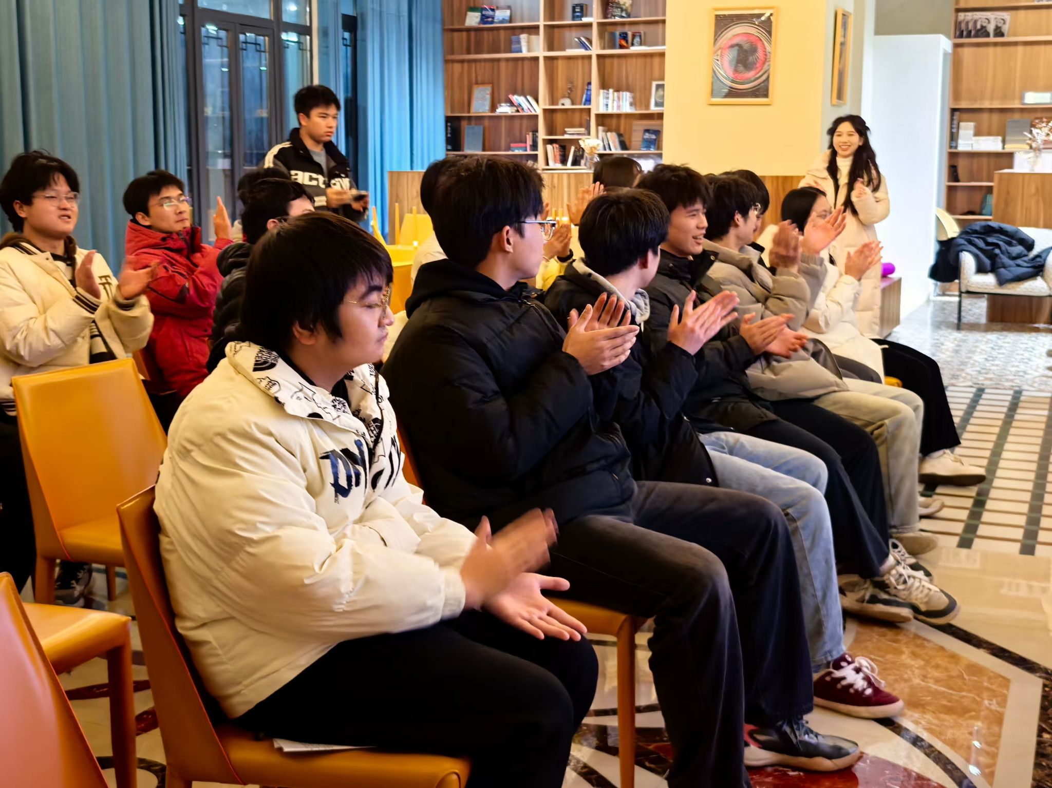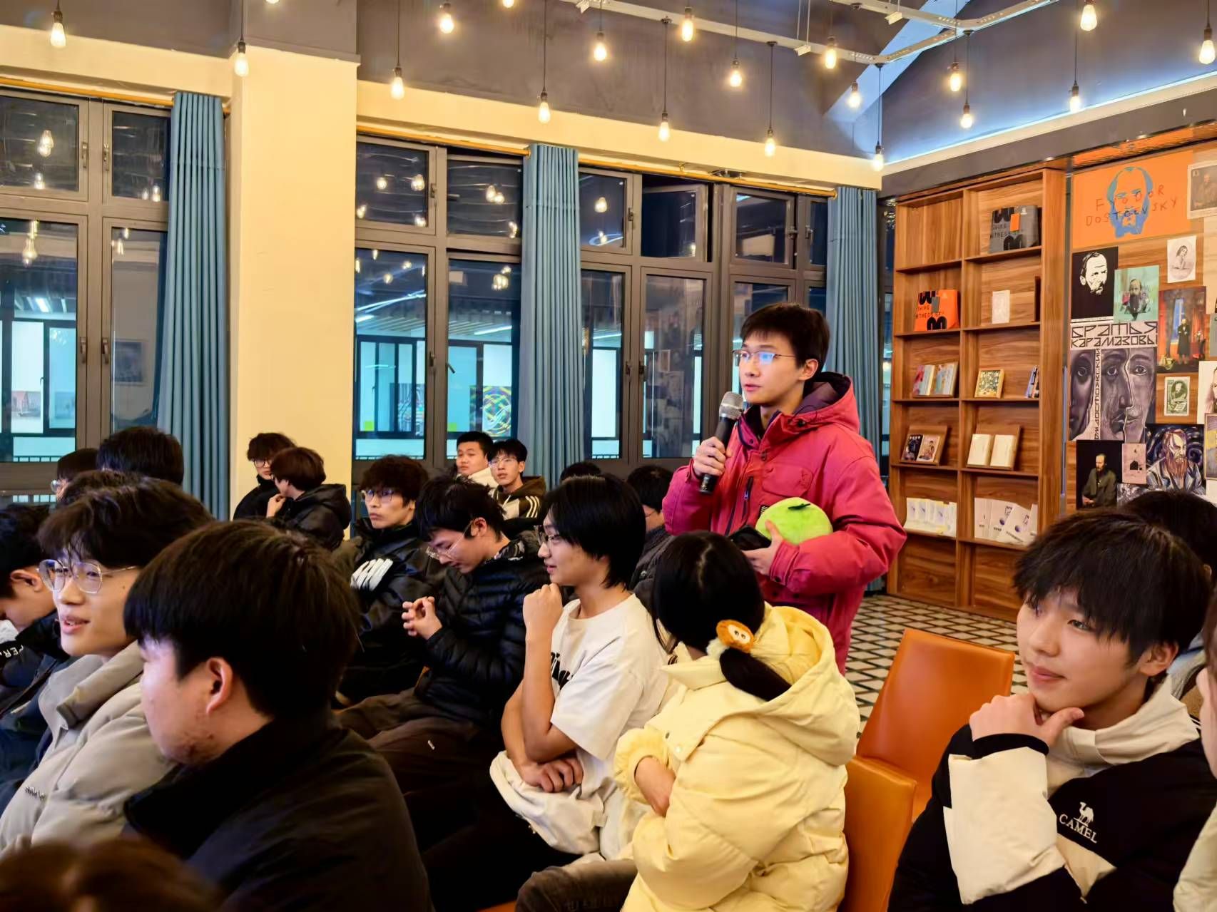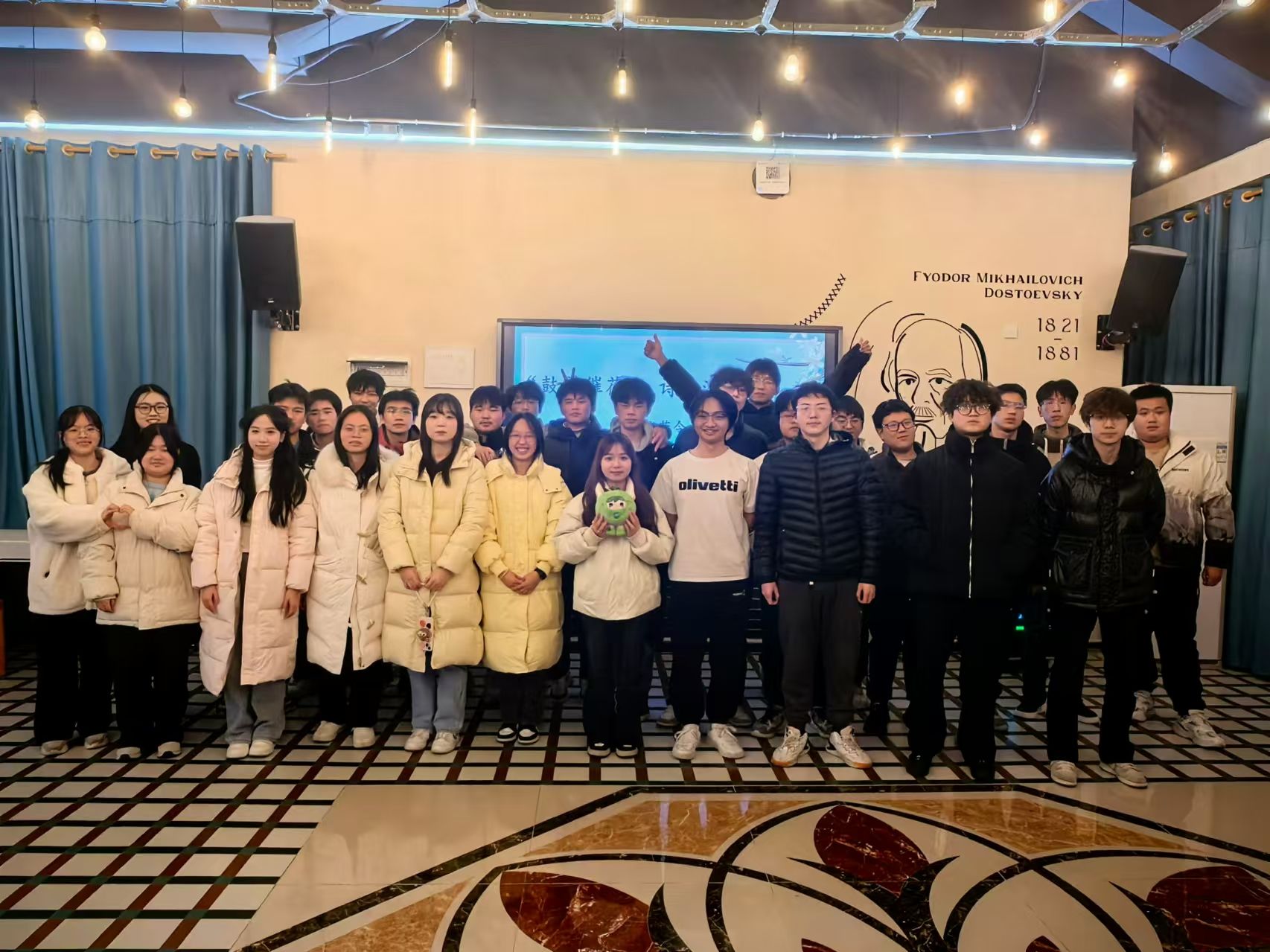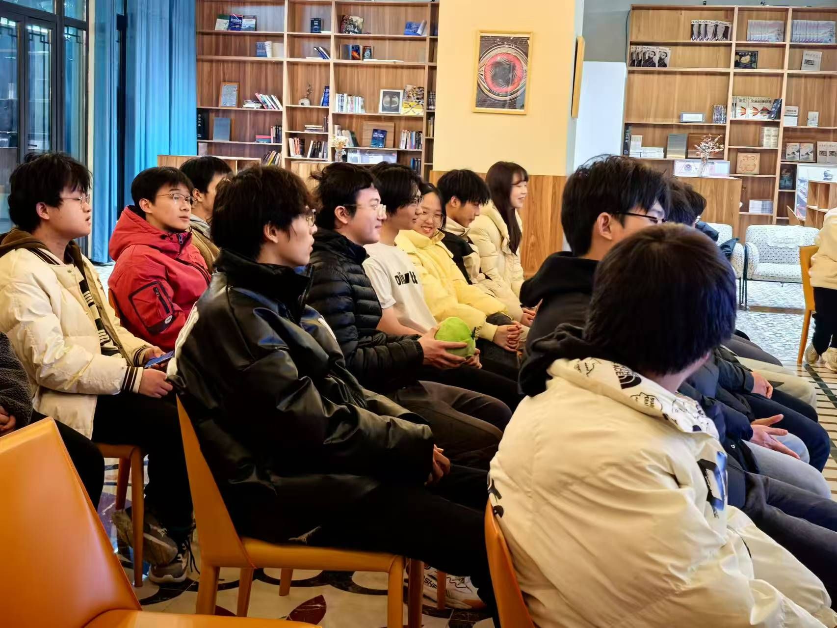 2024年12月18日,天空书院506院思妥耶夫斯基书店内诗香四溢,一场别开生面的以“鼓韵催花令,诗海绽华光”为主题的诗词活动在此盛大举行。本次活动由重庆移通学院示范创建团主办,2024级人工智能04支部全体同学参与其中,共同沉浸在中华诗词的魅力海洋。