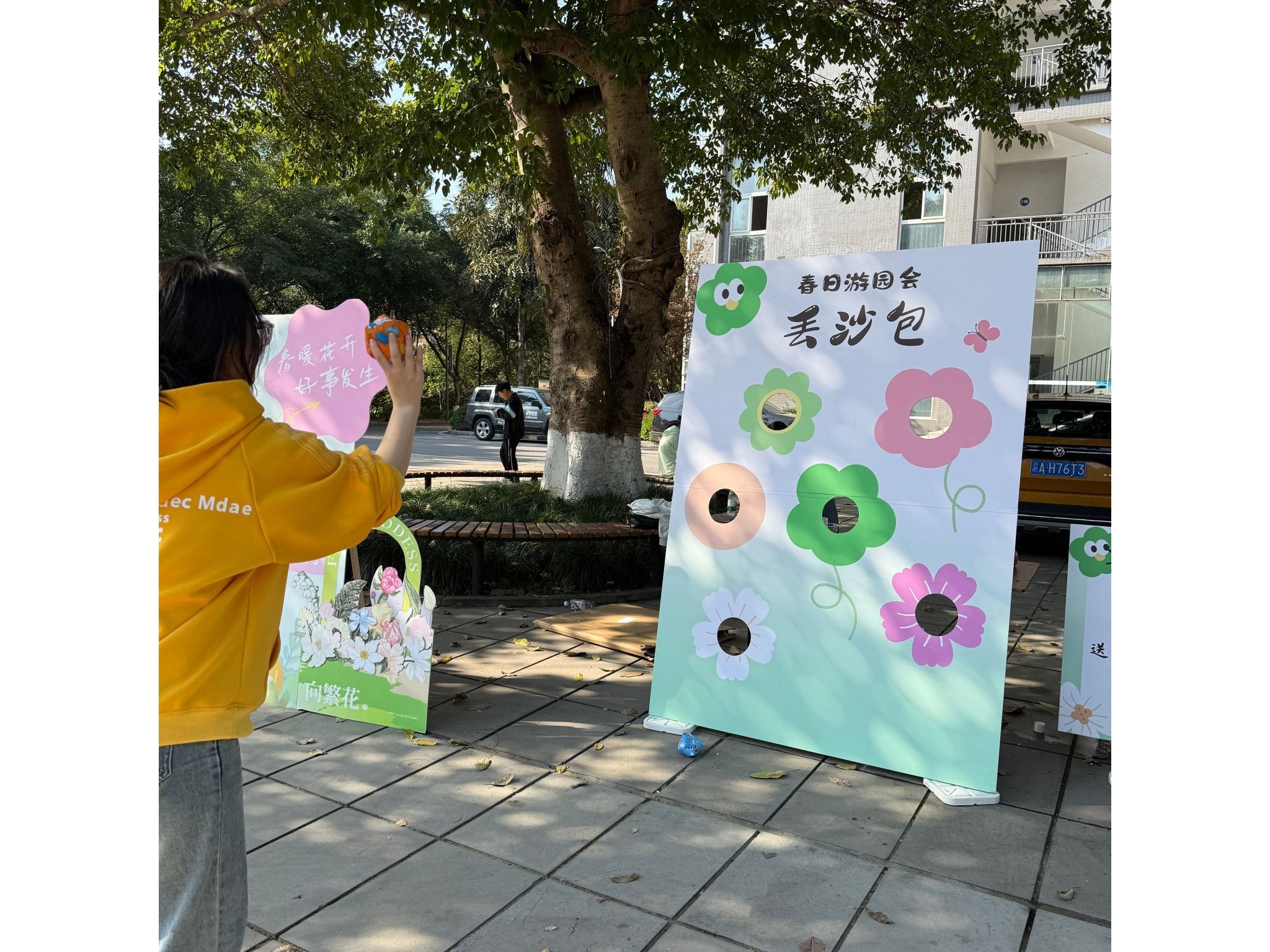 为给春日的校园增添一抹别样的亮色,让同学们在春日里尽情享受欢乐时光感受大自然的美好。提高同学们的的情感表达能力和心理调适能力,通信与信息工程学院2024级电信工程及管理专业专升本01支部于2025年3月26日14点在黄桷树广场成功举办了以“春甜花花·趣赶集”为主题的完满超级团支部活动。