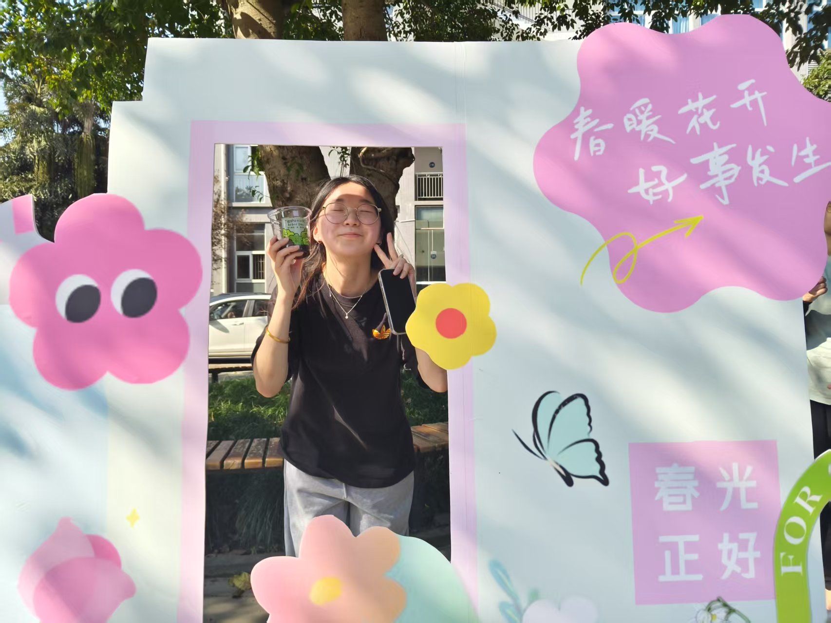 春日正好,怎能少了与春天的亲密合影?在陈乐妍同学及各班委的协助下,和春天拍照活动区域人头攒动。同学们纷纷寻找校园里最具春日气息的角落,或与盛开的花朵同框,或在嫩绿的草坪边留念,用相机定格下这美好的春日瞬间,让青春的笑容与烂漫春光一同成为永恒的记忆。