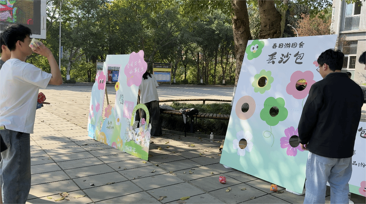 紧接着,丢沙包活动现场热闹非凡。在张越洋同学和各班委的有序组织下,参与者们手持三个沙包,站在指定位置,全神贯注地朝着目标洞口投掷。一时间,沙包在空中来回穿梭,加油声、欢笑声交织成一曲欢快的乐章。成功丢进2个及以上沙包的同学还收获了精美的小礼物和小种子,喜悦之情洋溢在每个人的脸上。