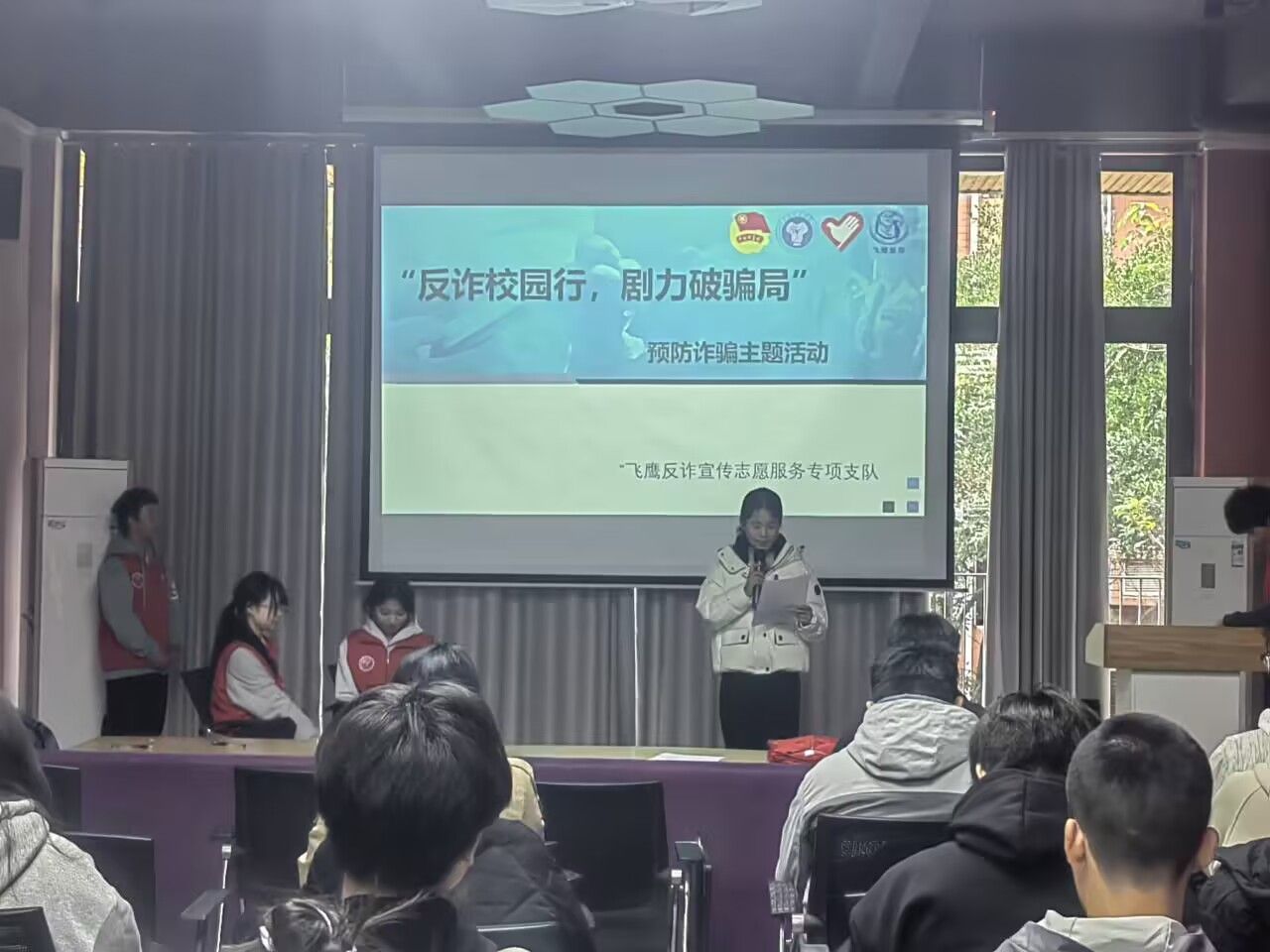 为提升大学生防范电信网络诈骗能力,2024级通信工程01支部和“飞鹰”反诈骗宣传志愿服务专项支队在别都书院四维空间举办“反诈校园行,‘剧’ 力破骗局”主题反诈小剧场活动。活动通过情景剧表演、专家剖析、互动问答等形式,将反诈知识融入鲜活案例,力求为同学们点亮反诈 “启明灯”,赋予识别诈骗的 “火眼金睛”。