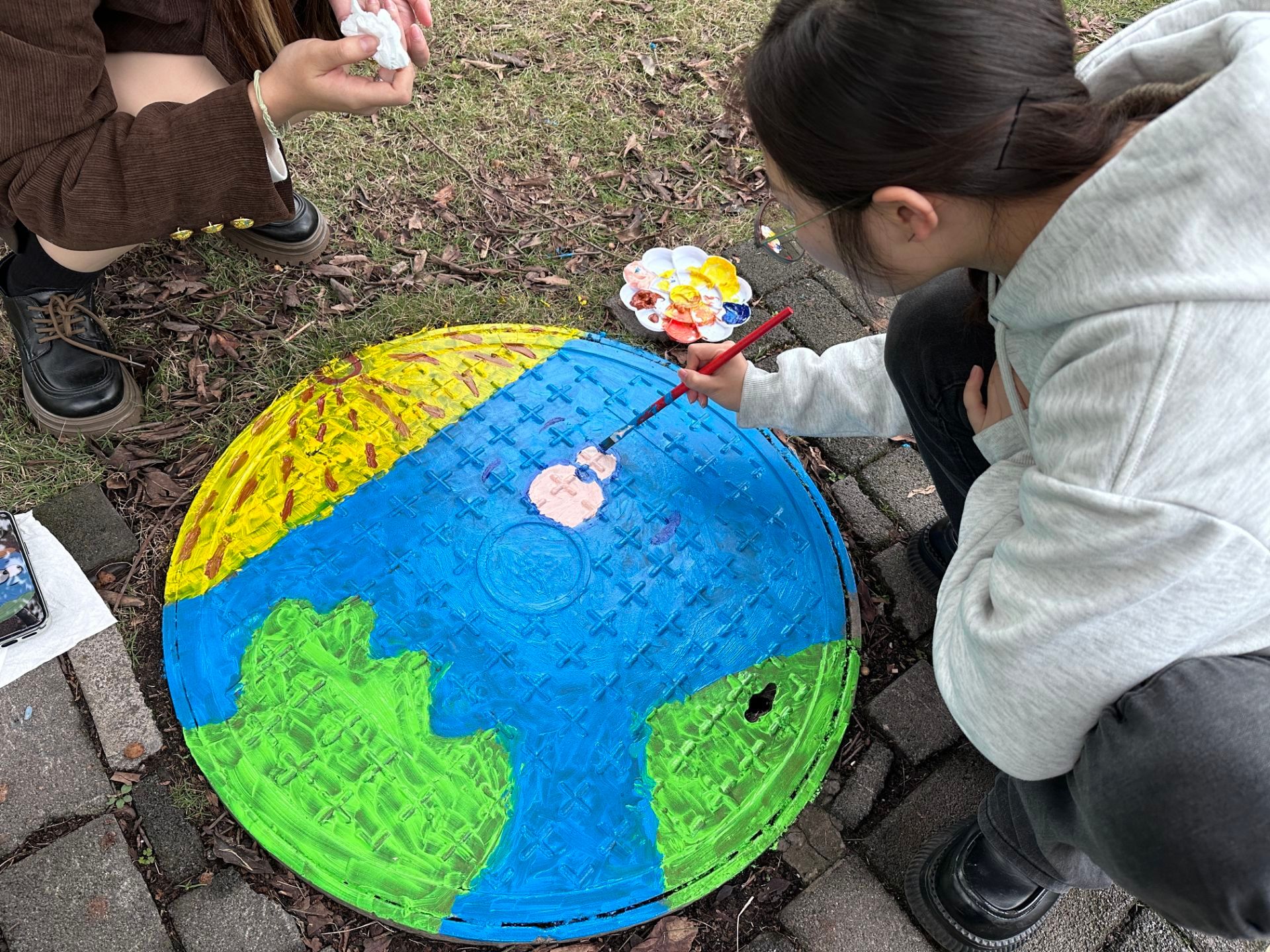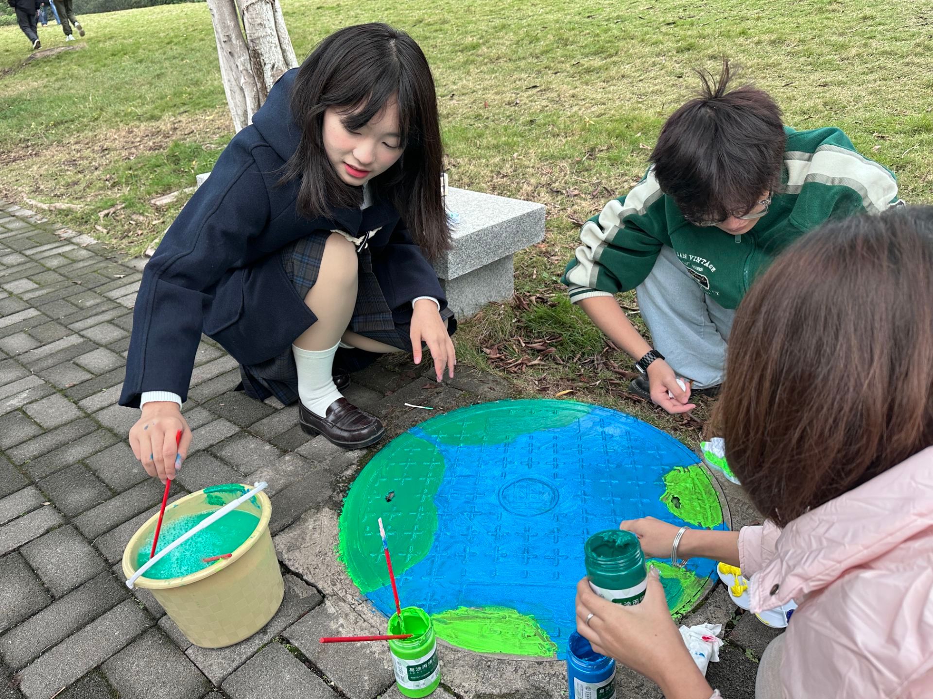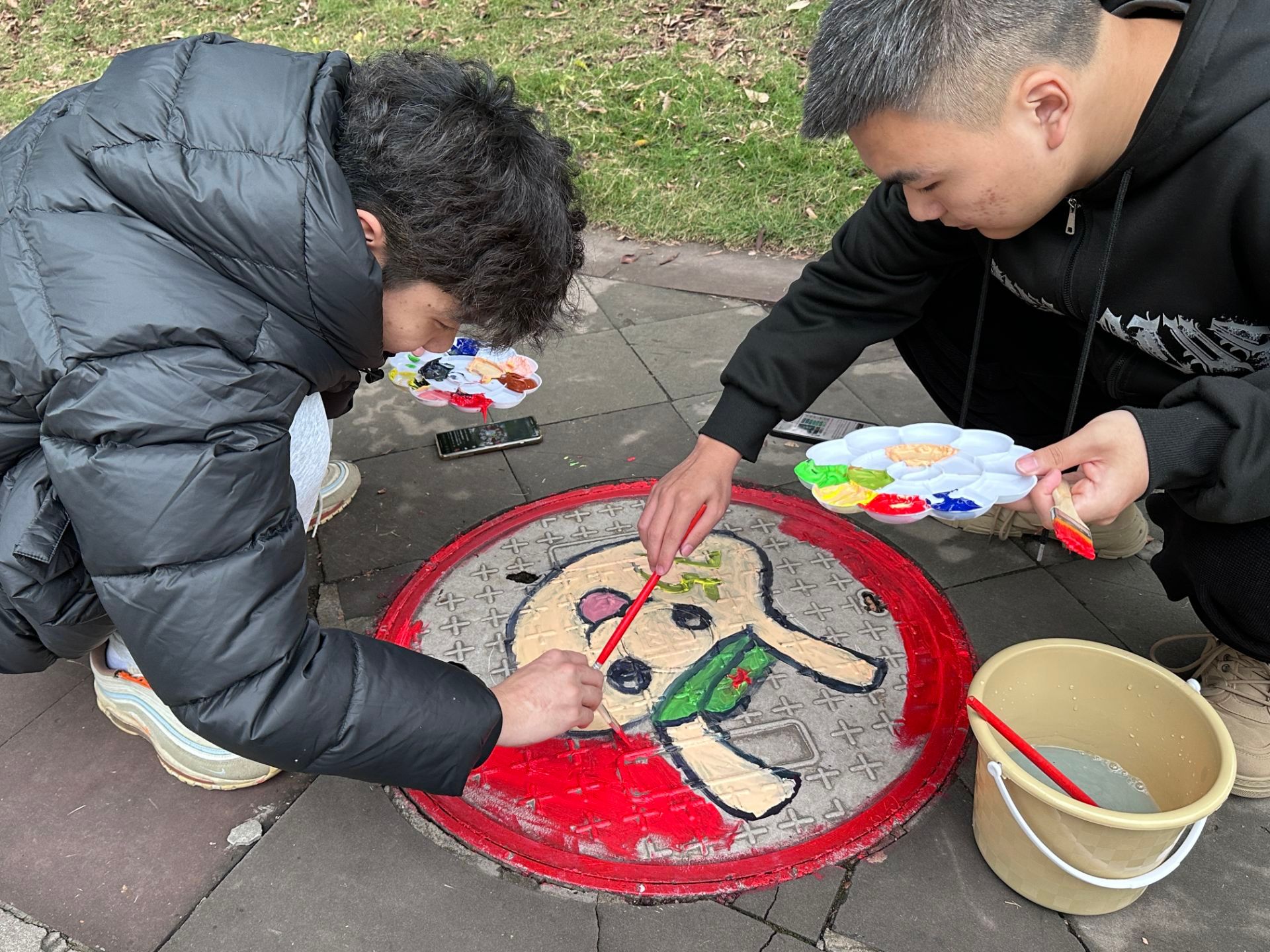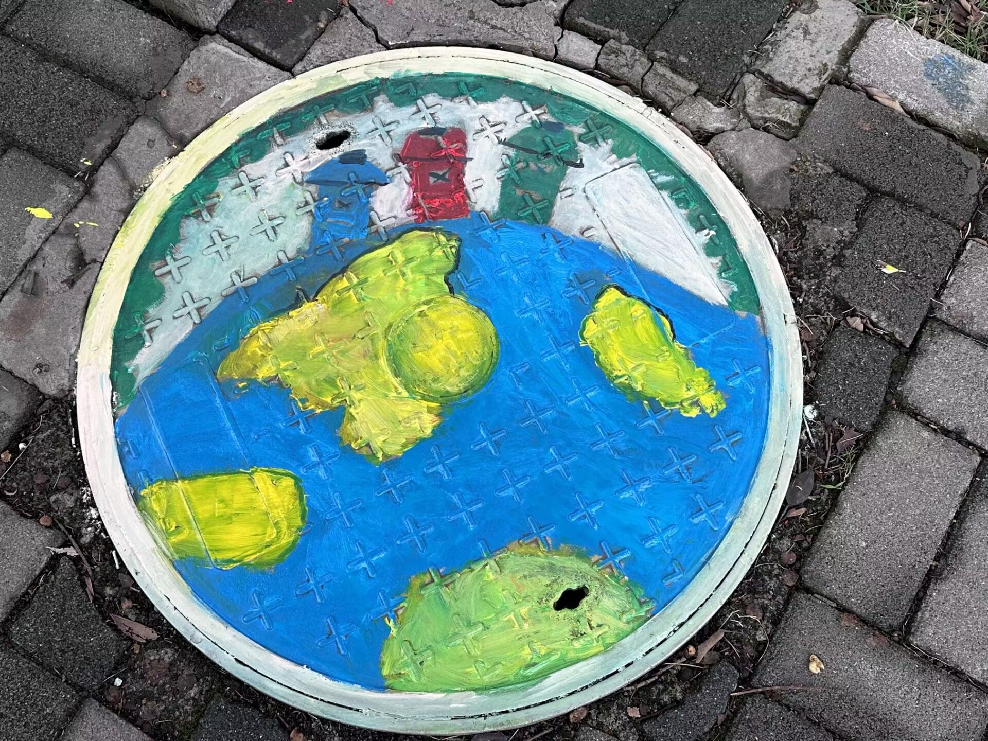 通过大家共同的努力,哆啦A梦,环境保护法等等在井盖跃然于上,丰富多样的设计风格,不仅反映了校园文化的多元性,也象征着同学们个性化发展的多样性。通过这样的活动,同学们不仅锻炼了自己的绘画技能,还增强了团队合作精神和环保意识。