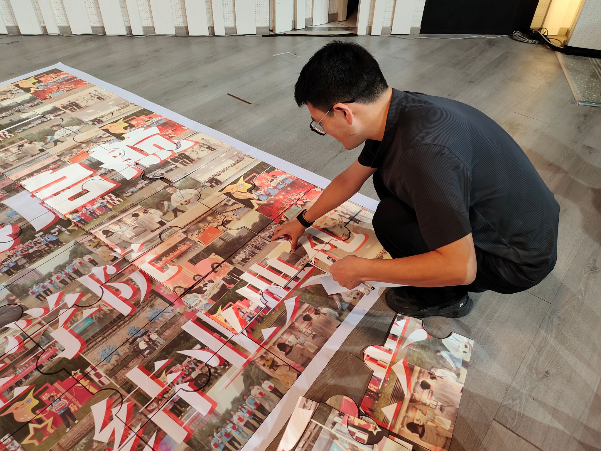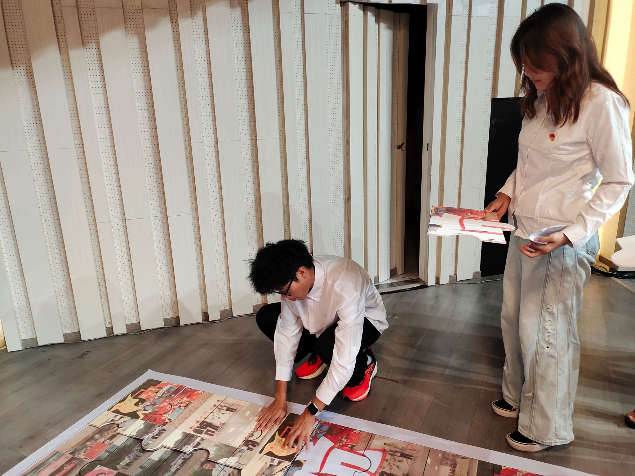仪式正式开始前,一幅大型主题拼图铺展于会场前方。画面融汇了理论学习、实践锻炼、红色教育等往昔成长画卷。青马学子俯身其间,凝神细观、精心拣选碎片,在协作拼合中重温共学岁月。随着碎片逐一衔接,完整画卷徐徐展现。
