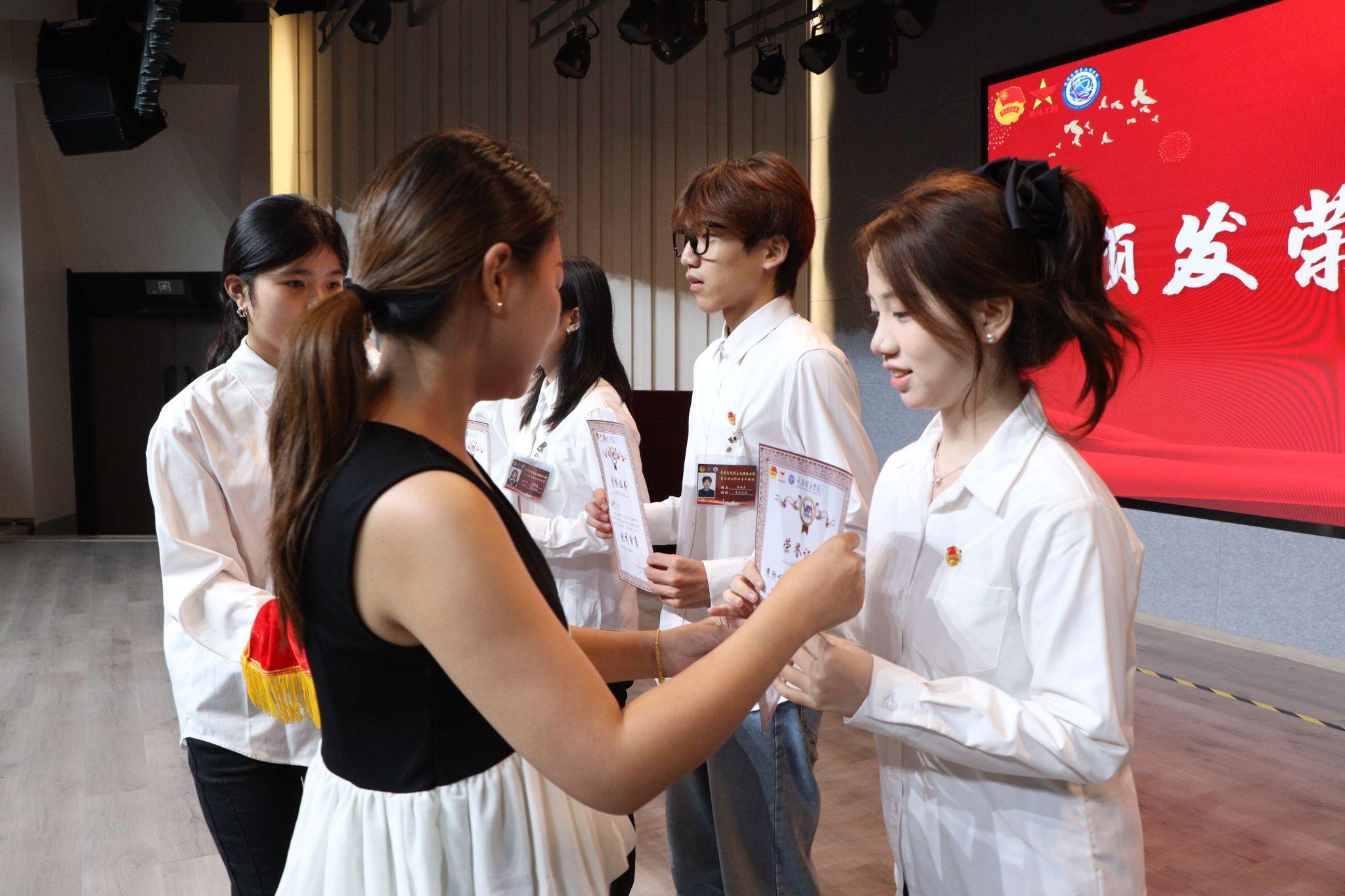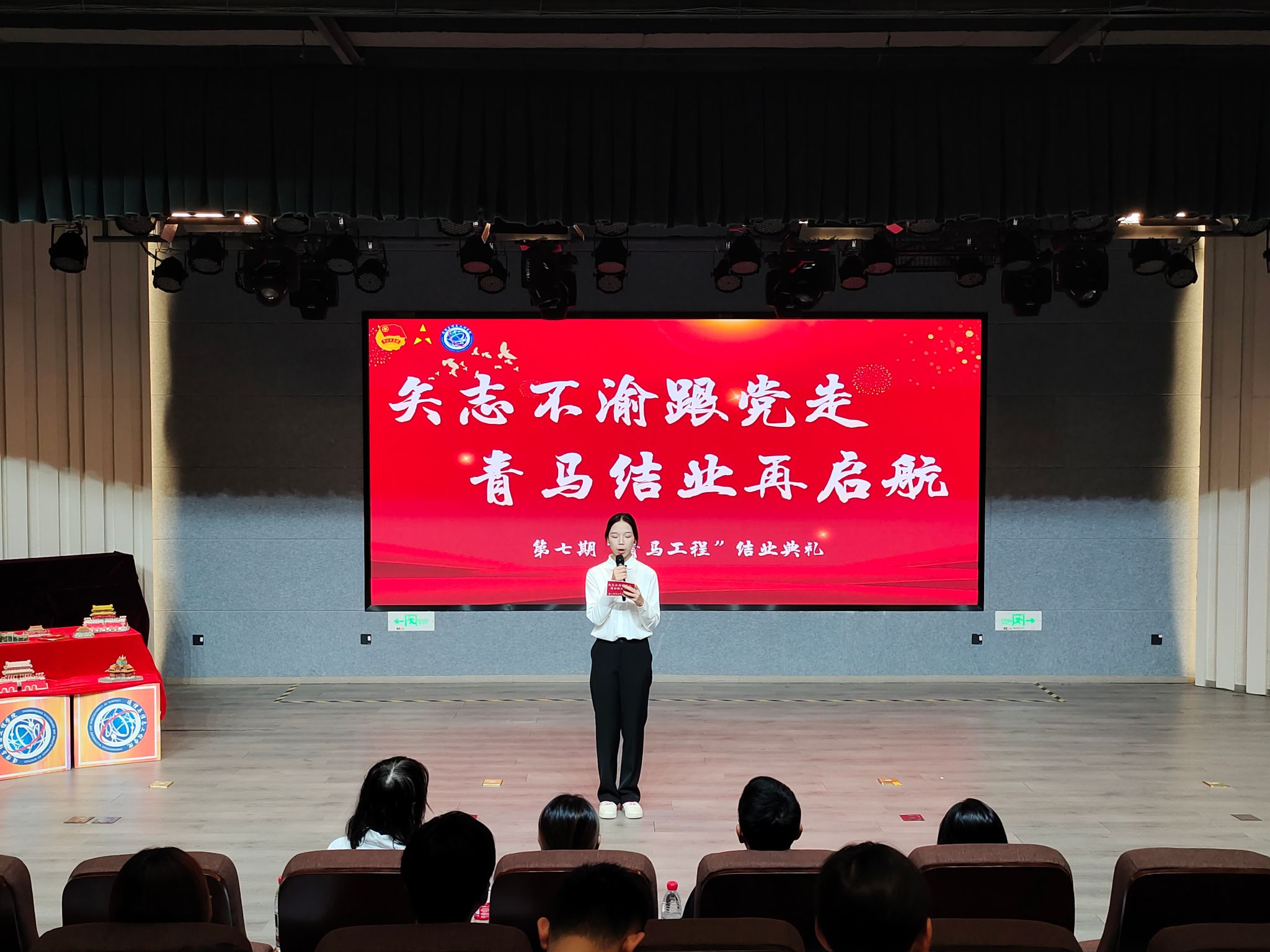 通信与信息工程学院团总支书记孙怡老师宣读了优秀学员名单,党总支副书记李林燕老师并为优秀学员代表颁发荣誉证书。作为优秀学员代表黄欣恬,她分享在“青马工程”中的收获与成长,表示将把所学知识融入实践,牢记总书记嘱托,以“强国有我”的志气投身现代化建设,让青春绽放绚丽之花。