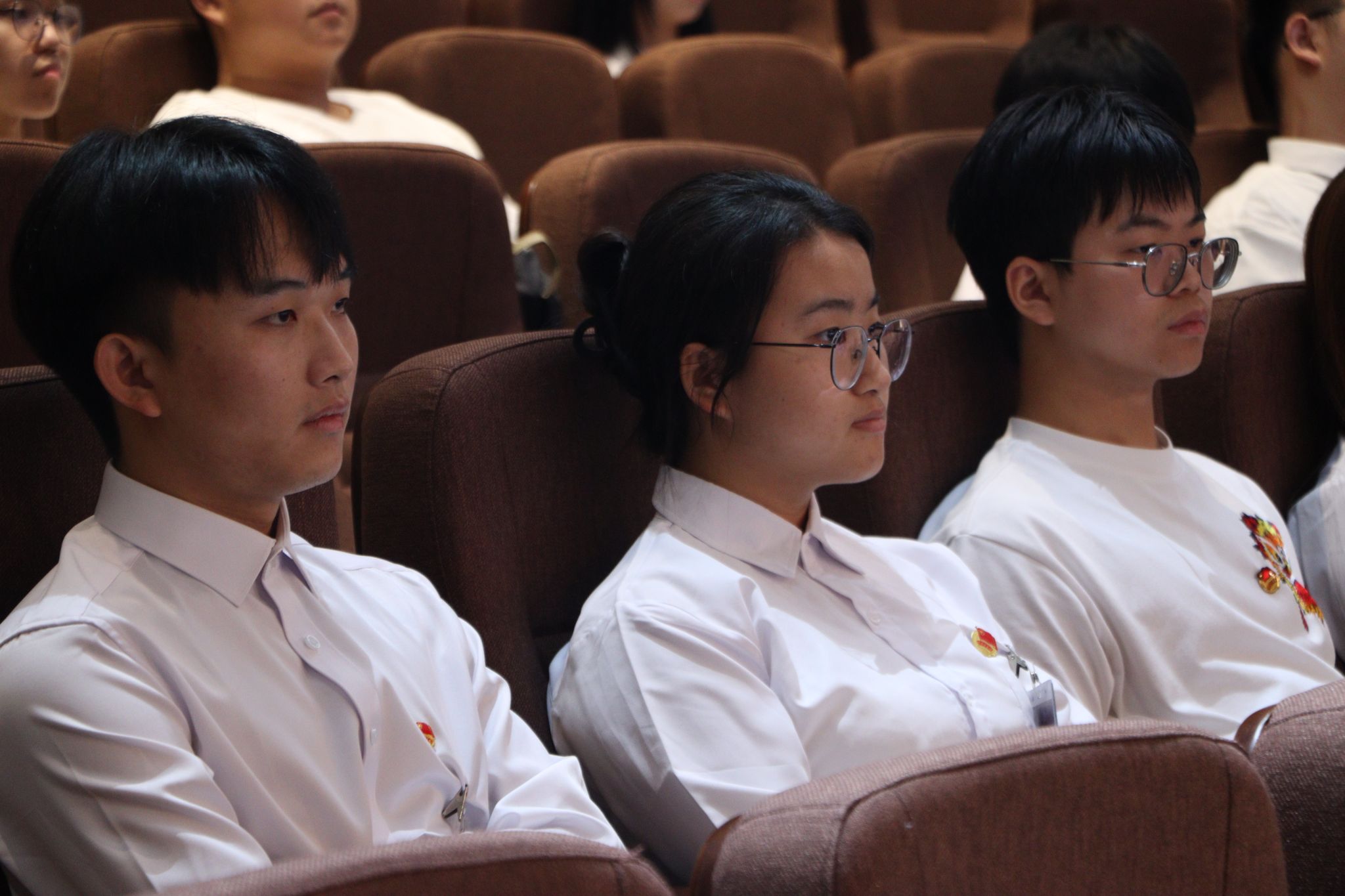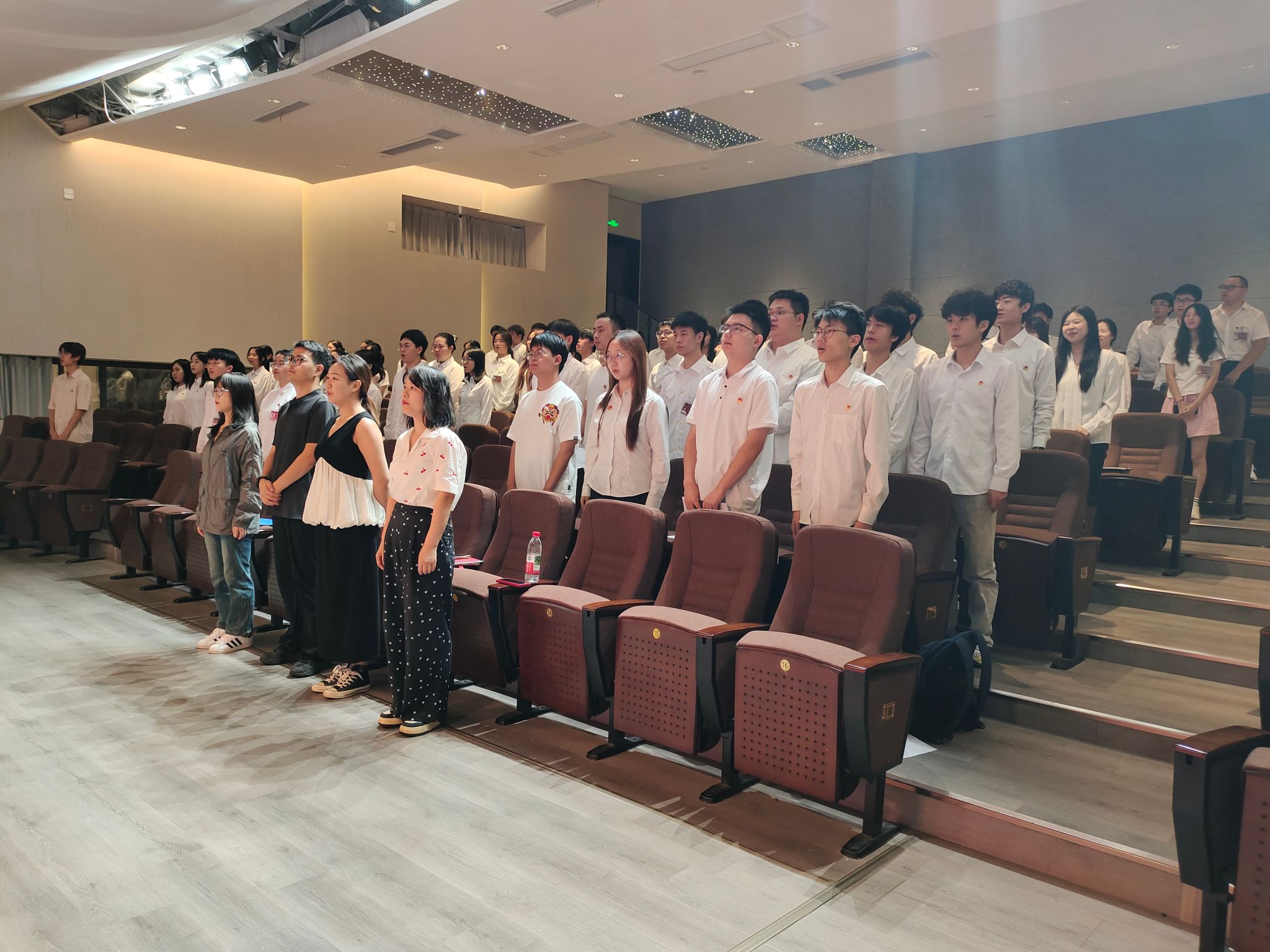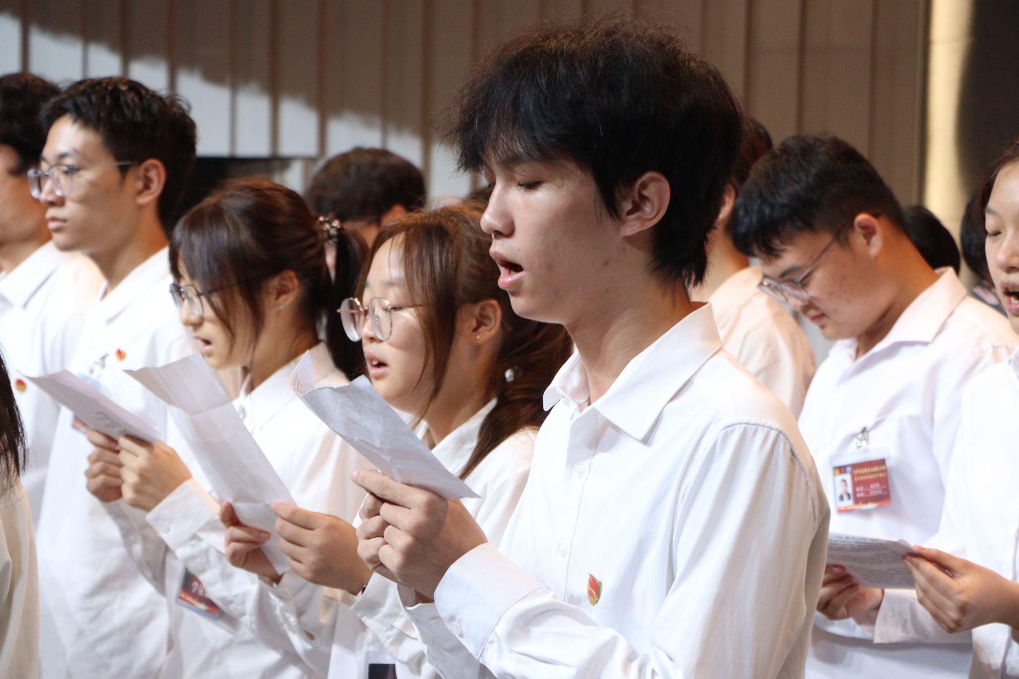 仪式伊始,全体学员肃立迎旗,齐声高唱“中国共产主义青年团团歌”。激昂的旋律回荡在校园上空,充分展现了新时代青年学子朝气蓬勃、奋发向上的精神风貌。