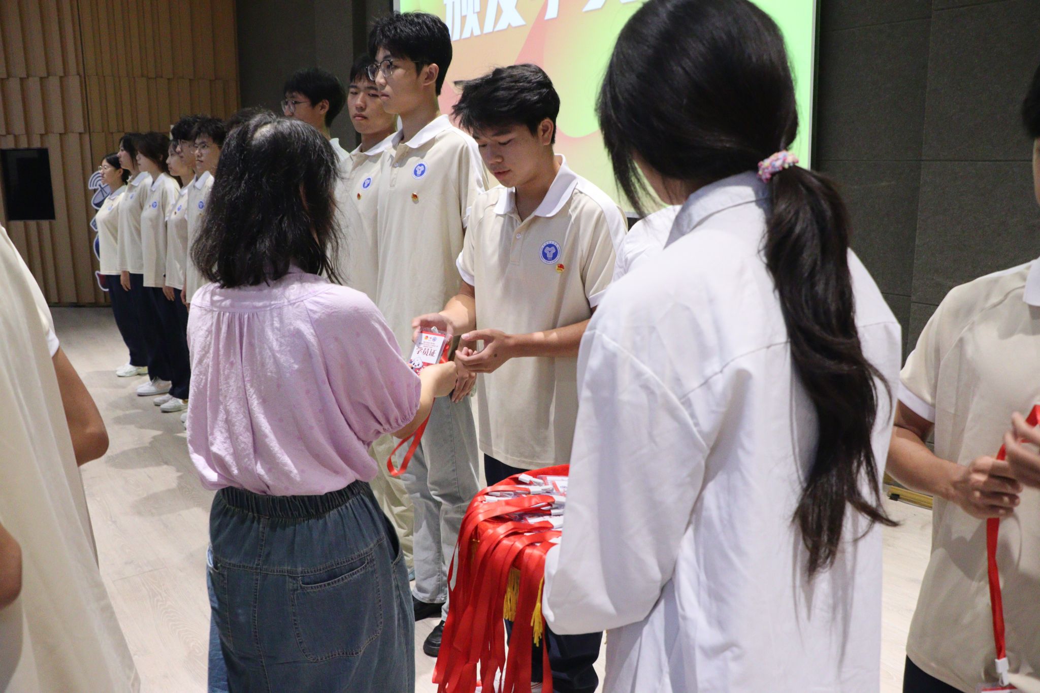 在全场的期待下,通信与信息工程学院组织建设指导老师马莉宣读了第八期“青马工程”初阶班学员名单。每个被念到的名字,都代表着一份认可与期许。紧接着,党总支副书记李林燕老师和组织建设指导老师马莉为学员们颁发学员证。小小的学员证,不仅是身份的象征,更是一份沉甸甸的责任,它承载着学院对青马学员的期望,不仅标志着学员们正式开启青马工程的培养历程。更承载着学院的厚重期望与青年的时代责任,正式宣告全体学员迈入青马工程培养的新阶段,开启理论学习与实践锻炼相结合的成长之旅。