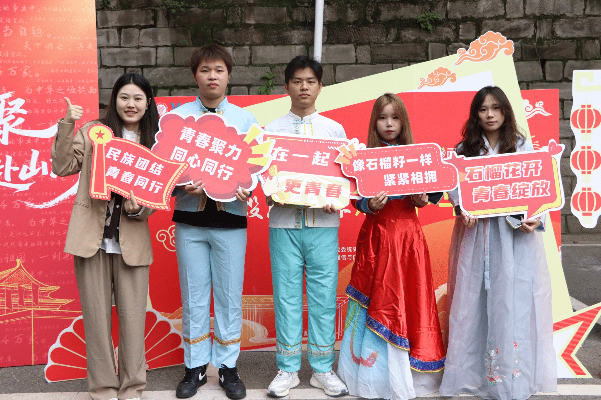 活动在黄桷树广场拉开序幕,各民族学子通过随机组队迅速打破陌生隔阂。在3分钟限时内完成自我介绍与口号构思,“民族团结,同心筑梦!”“携手并进,共耀中华!”响亮的口号此起彼伏,现场笑语不断、气氛热烈,为整场活动注入了青春活力与协作动能。