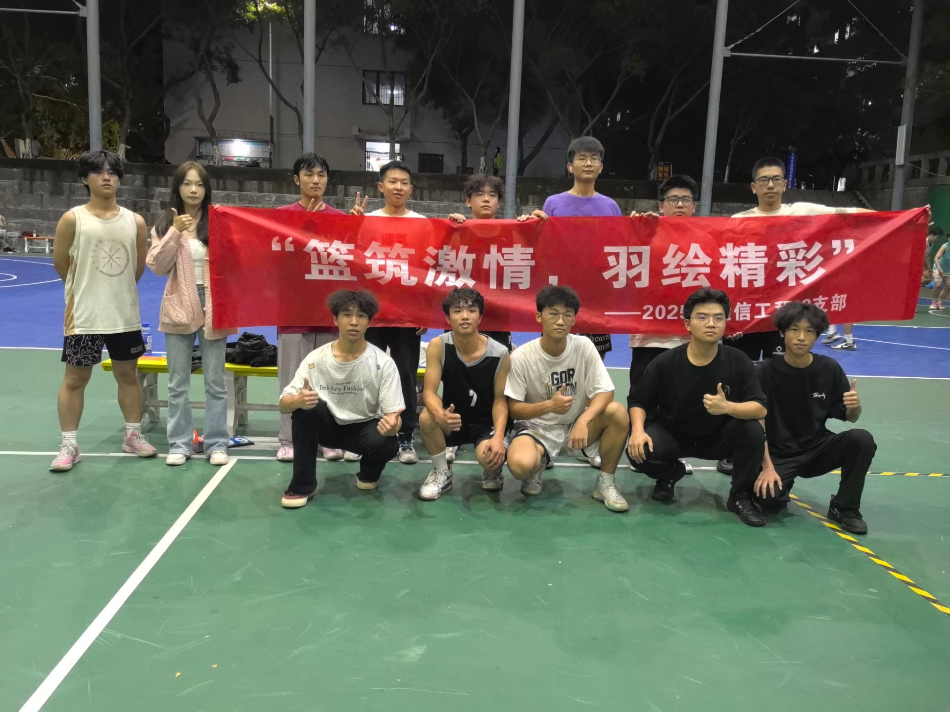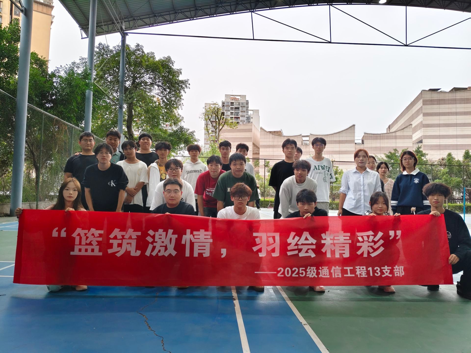 为锤炼学子强健体魄,磨砺坚韧意志,10月17日下午,通信工程13班全体学子与大二学长在风雨球场携手开展了一场别开生面的完超活动。活动以“以球会友,以赛聚力”为宗旨,同学们热情高涨、积极参与,在赛场上尽情释放运动激情、展现青春风采,为校园全民健身热潮注入了新的活力。