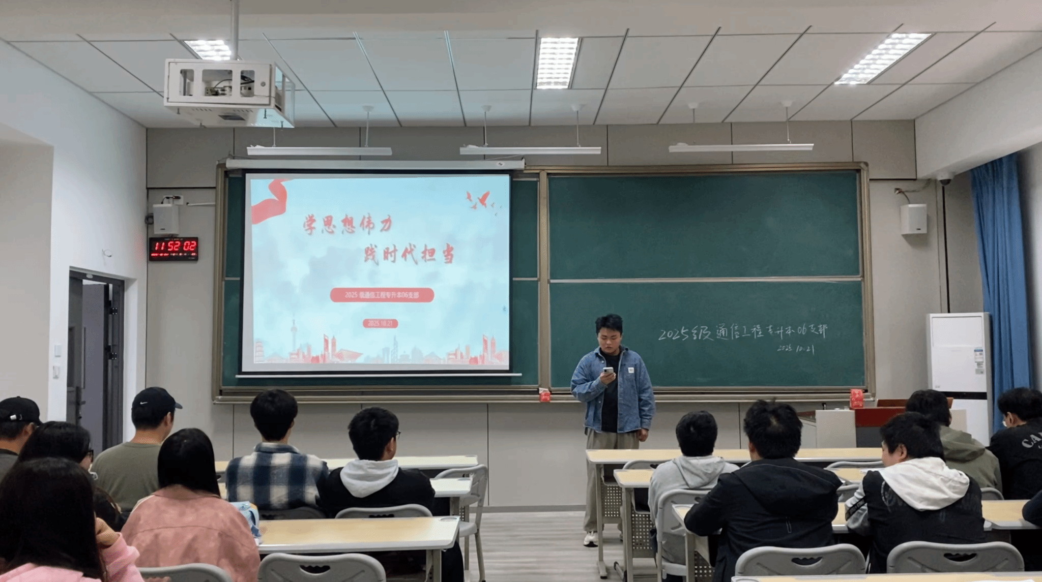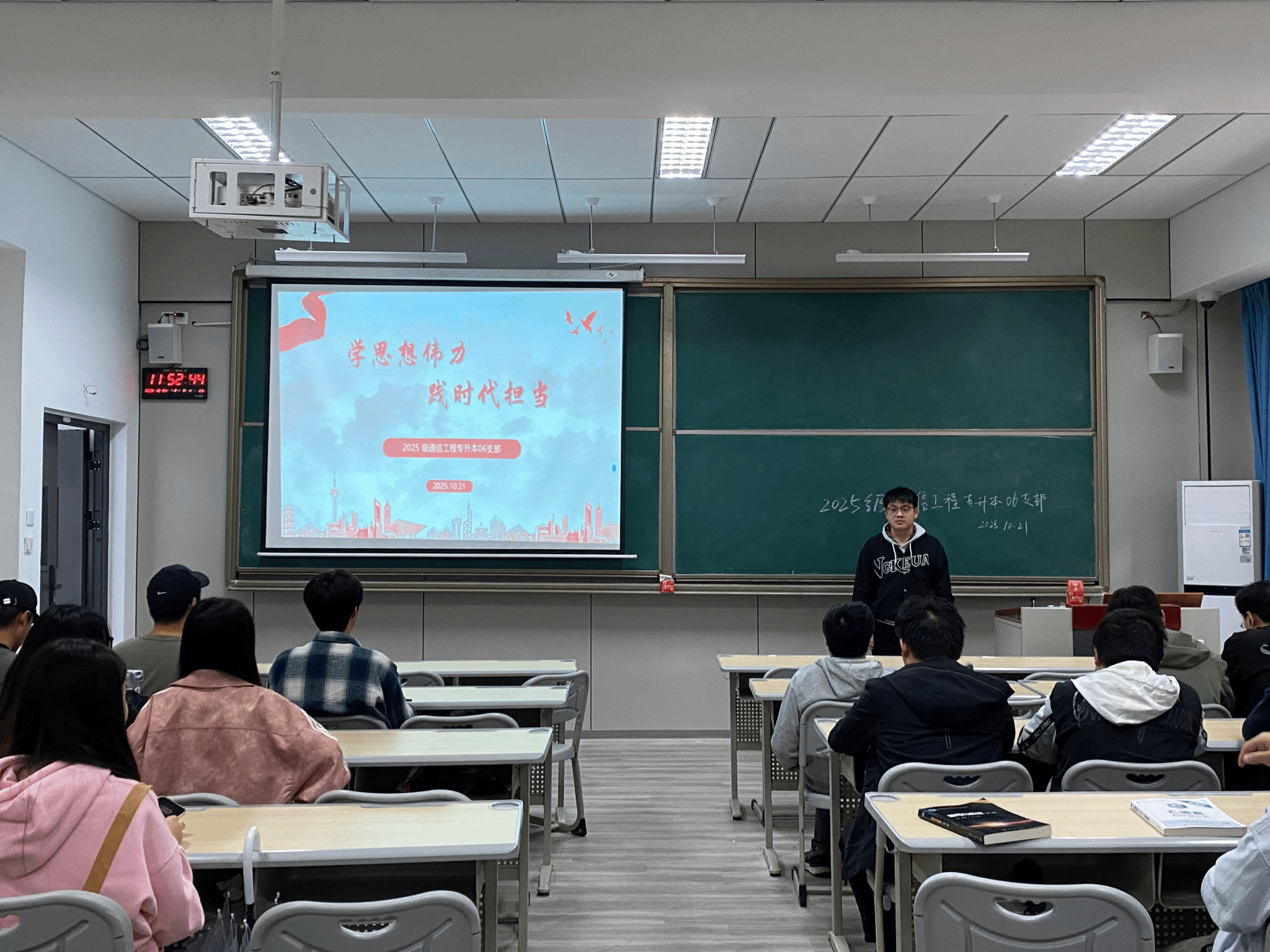 为深入学习贯彻思想理论,引导班级同学明确时代使命,2025 年 10 月 21 日 14 点,2025 级通信工程专升本 06 支部成功举办了以 “学思想伟力,践时代担当” 为主题的团支部主题活动。此次活动围绕毛泽东思想与中国特色社会主义理论体系展开,通过多种形式推动思想引领与实践育人深度融合,助力团员青年成长成才。