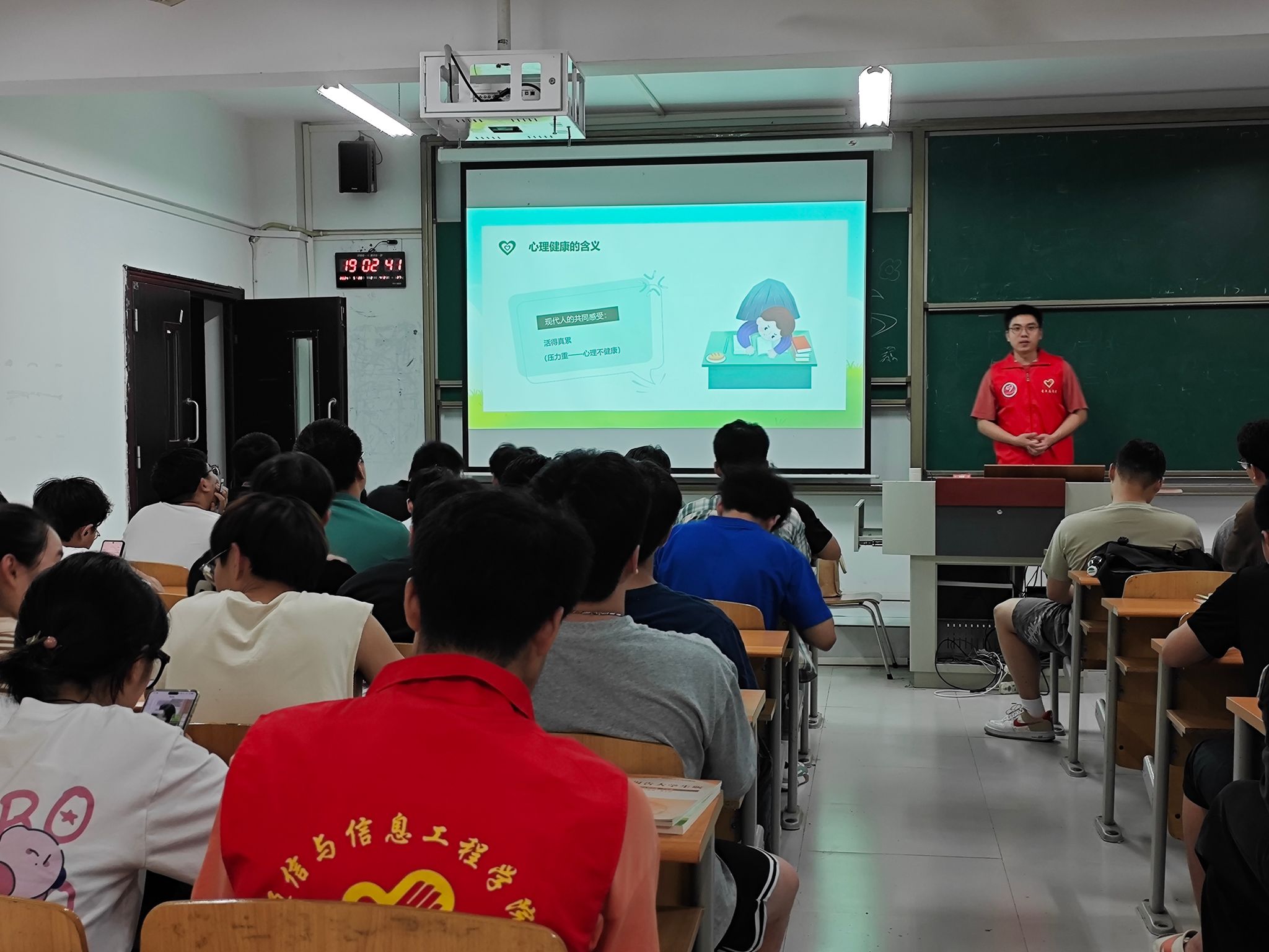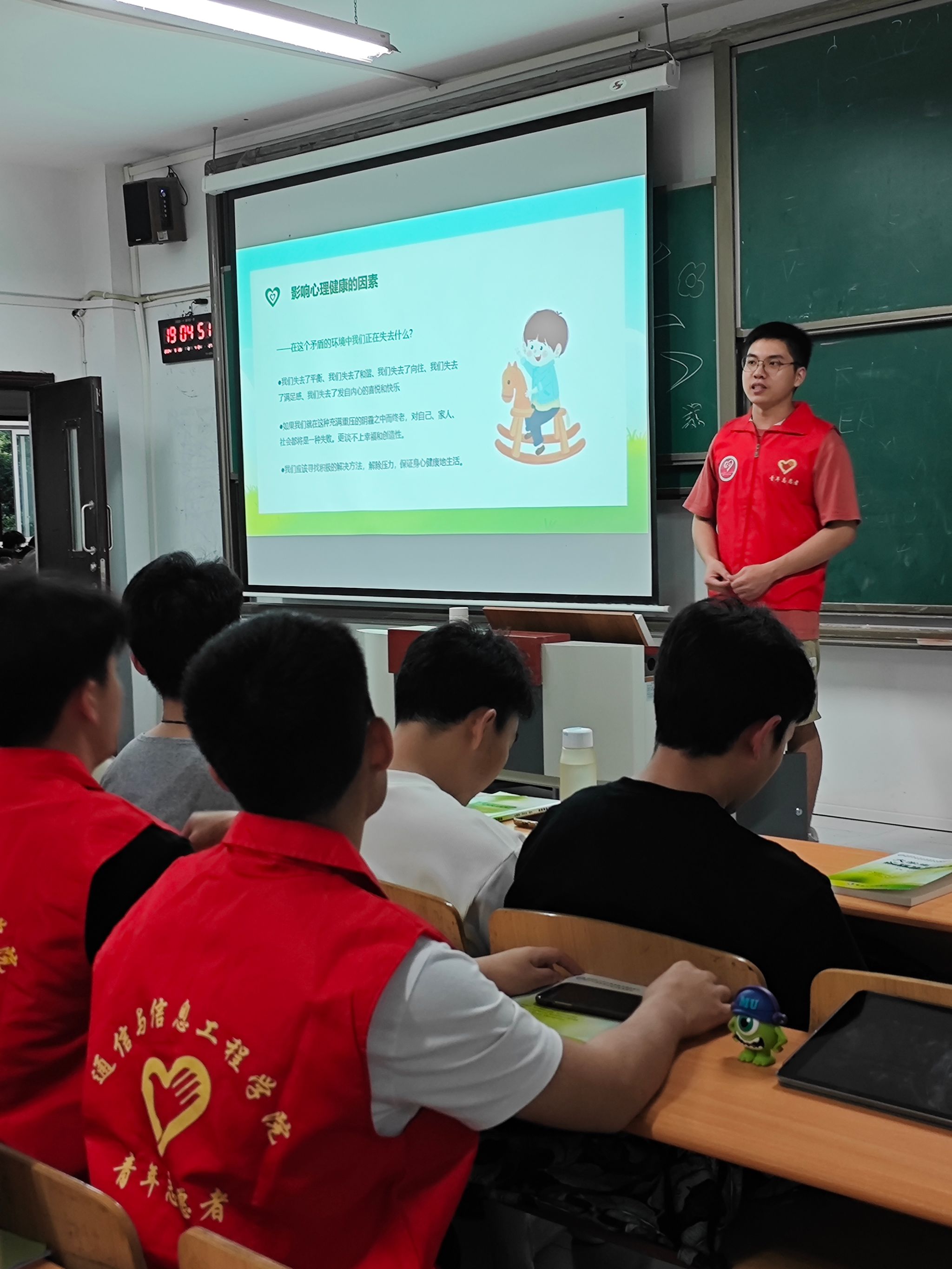 活动首先由微语心理健康志愿服务专项支队支队长为大家讲解了心理健康方面的知识,并进行了简单的心理测试。同学们对这些心理小测试非常感兴趣,积极参与。接着,支队长分享了许多心理健康方面的案例,特别是那些因心理问题而影响日常学习和生活的实例,深刻引发了同学们的思考和共鸣。