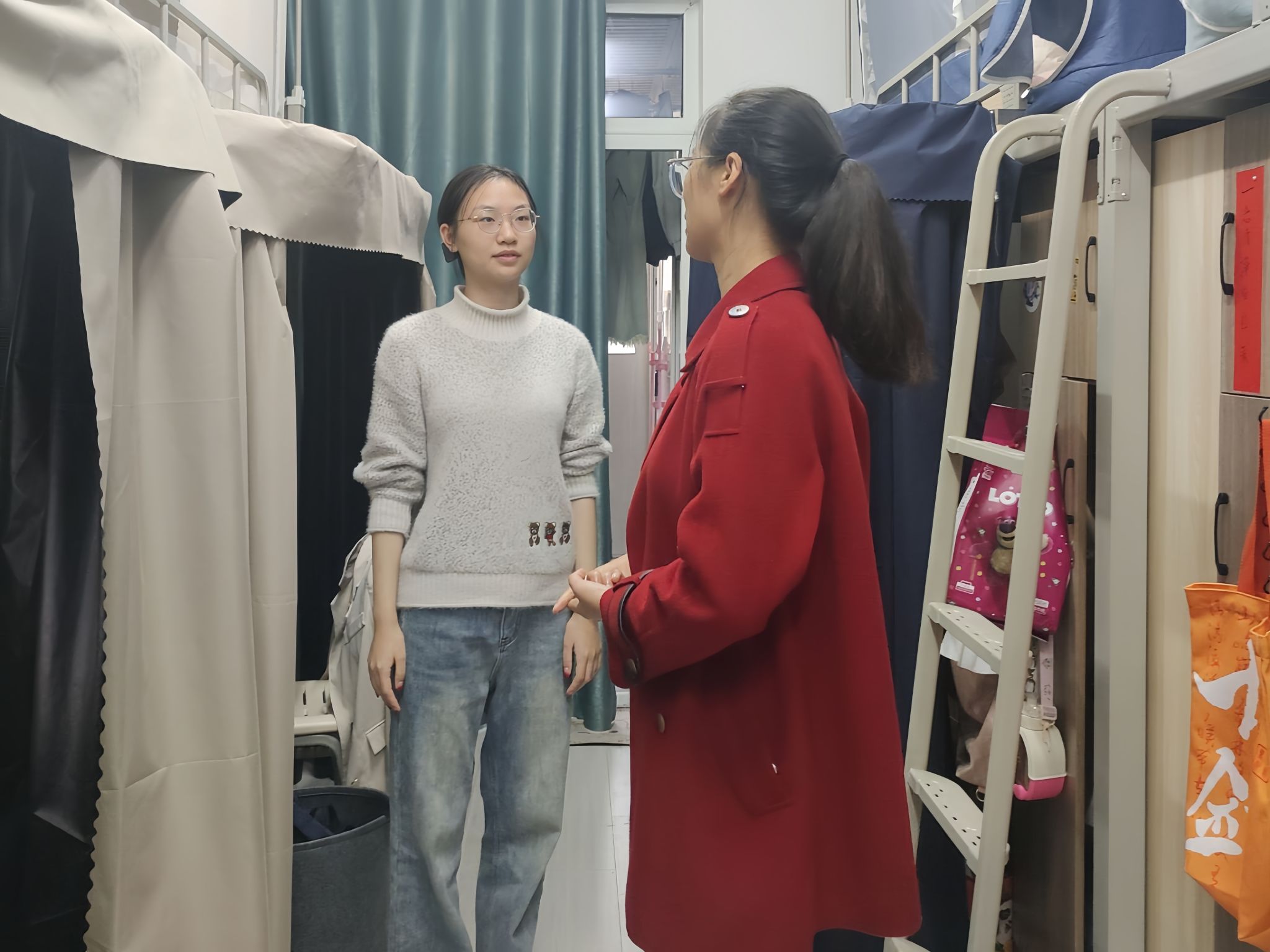 辅导员们轻轻敲响一扇扇房门,目光所及之处,皆被仔细考量,从室内通风状况到床铺保暖程度,从电器设备安全性到消防通道畅通性,无一不被纳入检查范围。老师们以高度的责任感和使命感,精心排查每一个可能存在的隐患,为同学们营造安全舒适的居住环境。