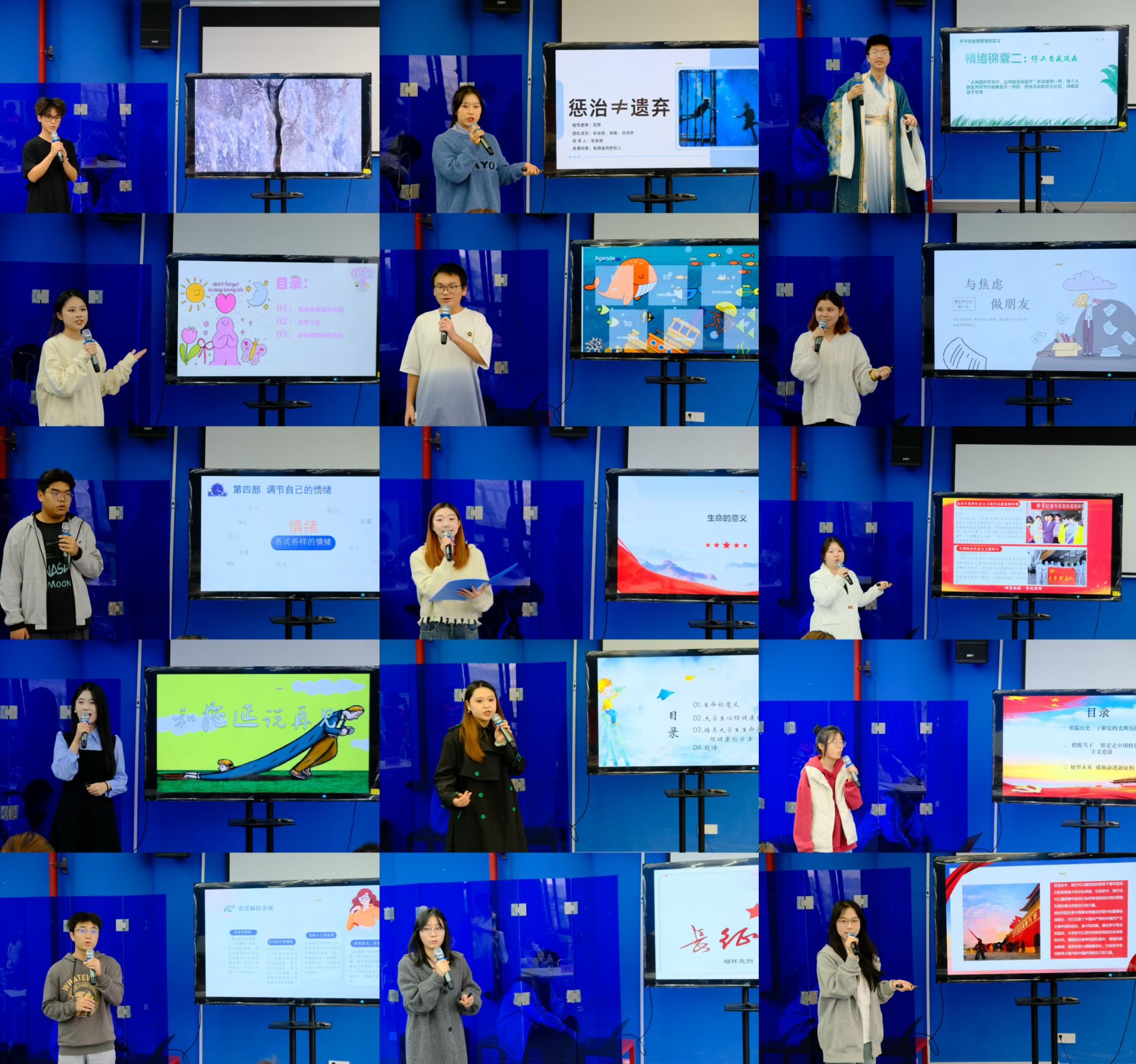 比赛当天,各参赛队伍依次上台进行展示,选手们通过生动的讲解和精美的PPT课件,将各自的设计理念与心理健康知识传达给在场观众。选手们的表现各具特色,有的通过案例分析引发思考,有的则通过互动环节增强参与感,充分展现了他们对心理健康教育的理解与热情。