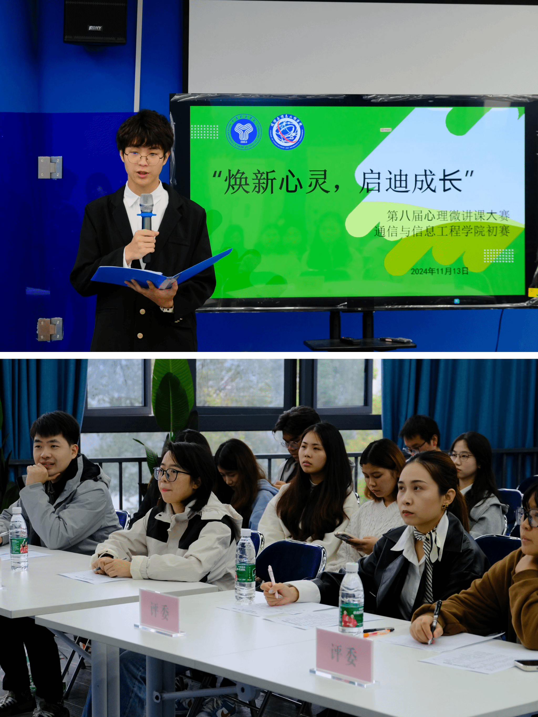 2024年11月13日,重庆移通学院通信与信息工程学院在天空书院揽江厅师生交流室成功举办了“焕新心灵,启迪成长”第八届心理微讲课大赛学院初赛。本次活动由学院学生工作办公室、“微语”心理健康志愿服务专项支队主办,并得到“心育晴天”辅导员工作室的专业技术支持。