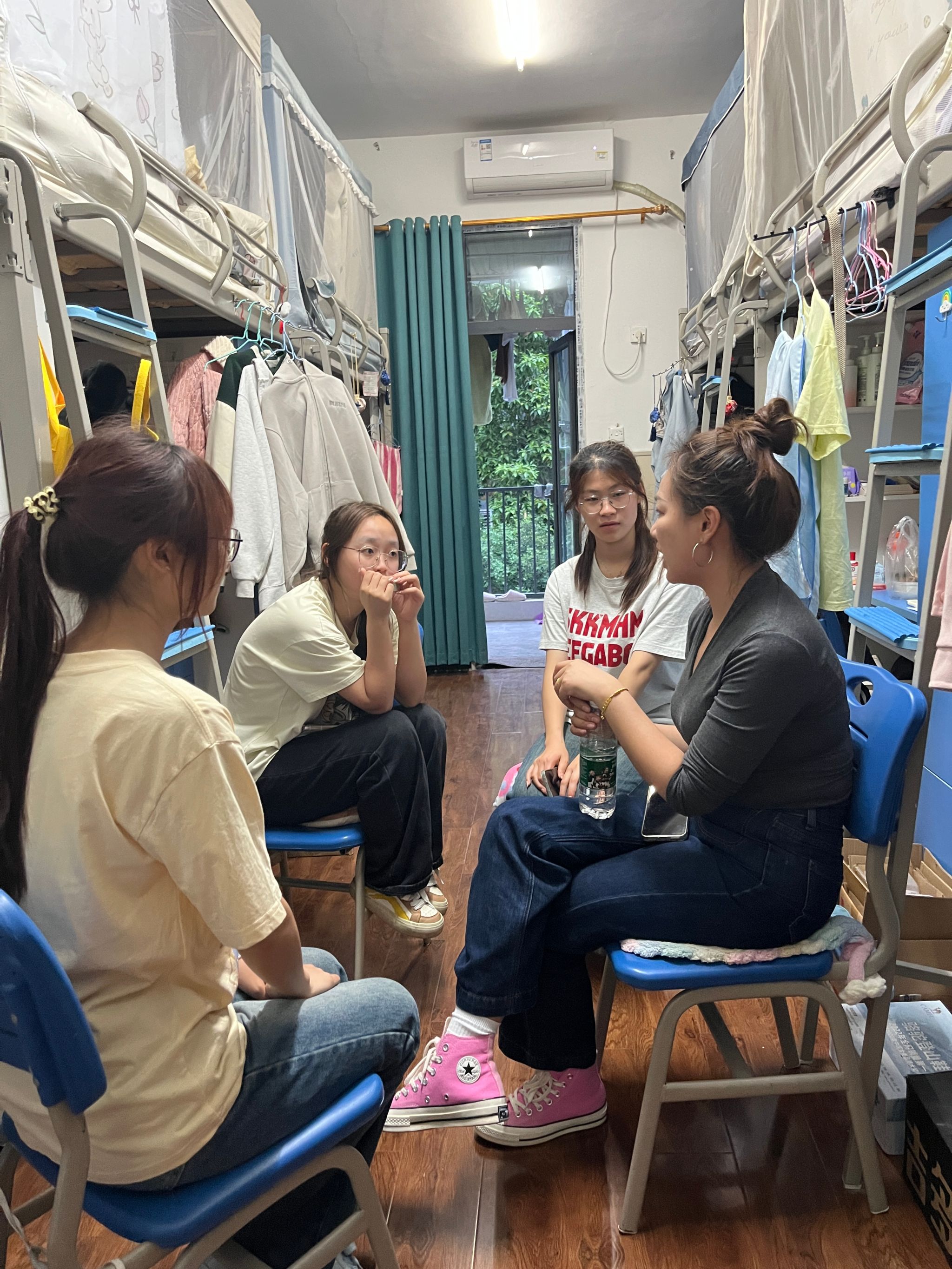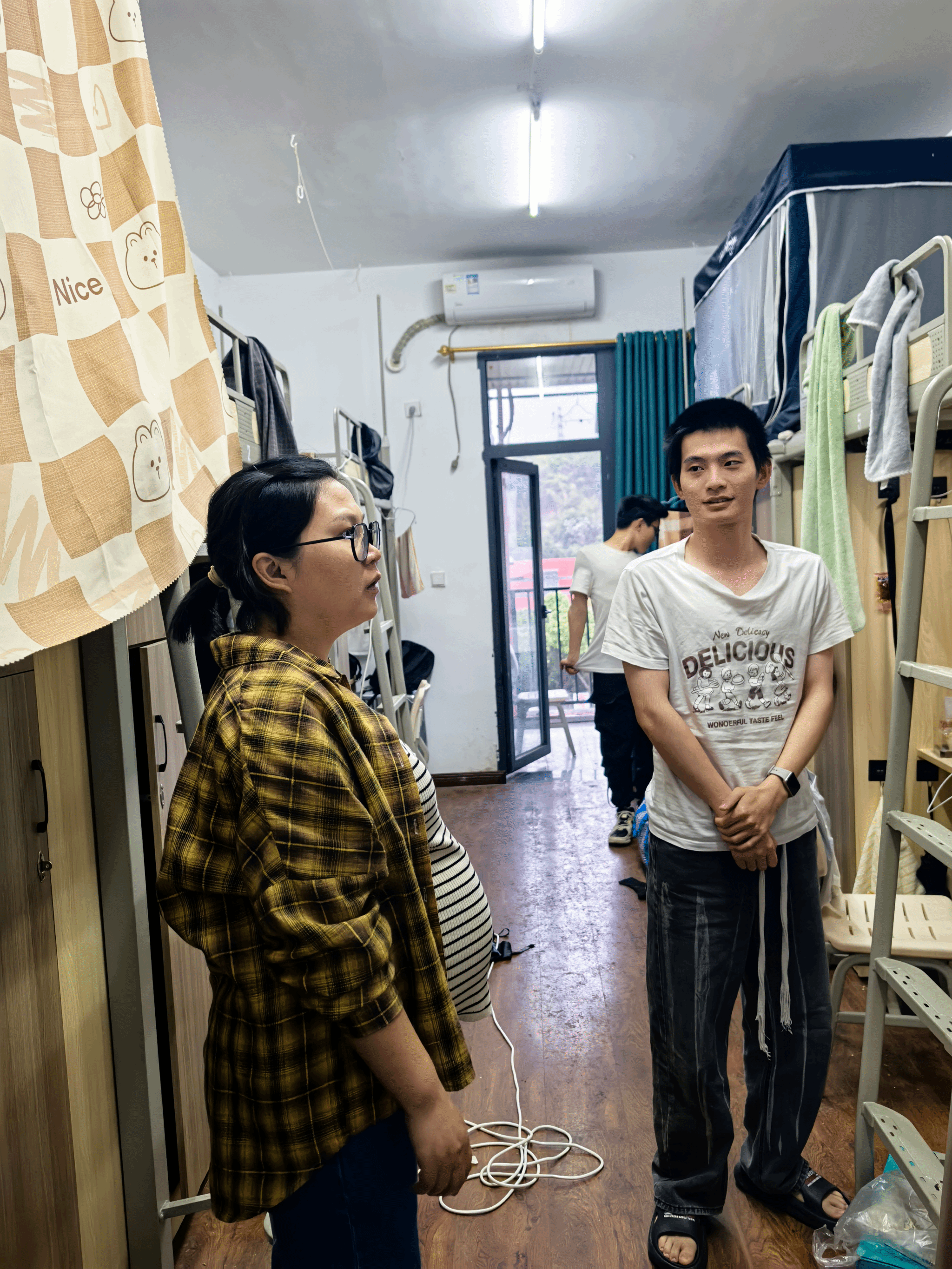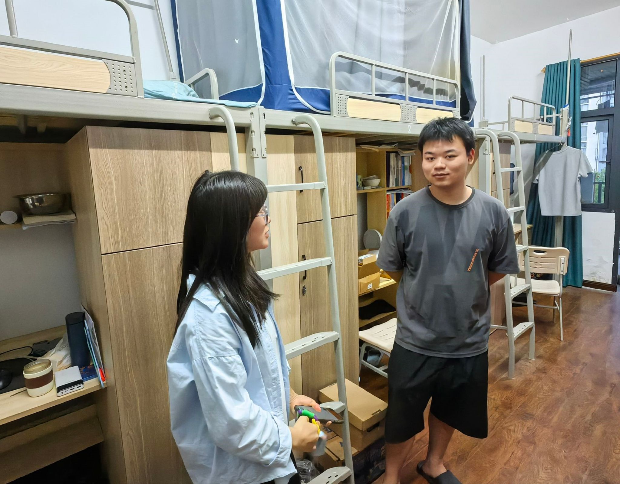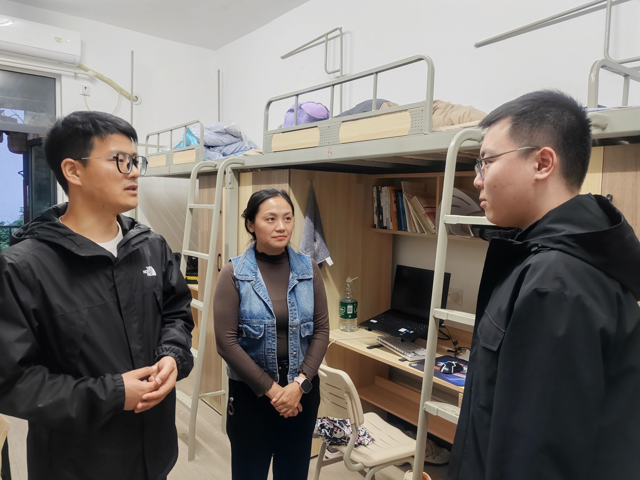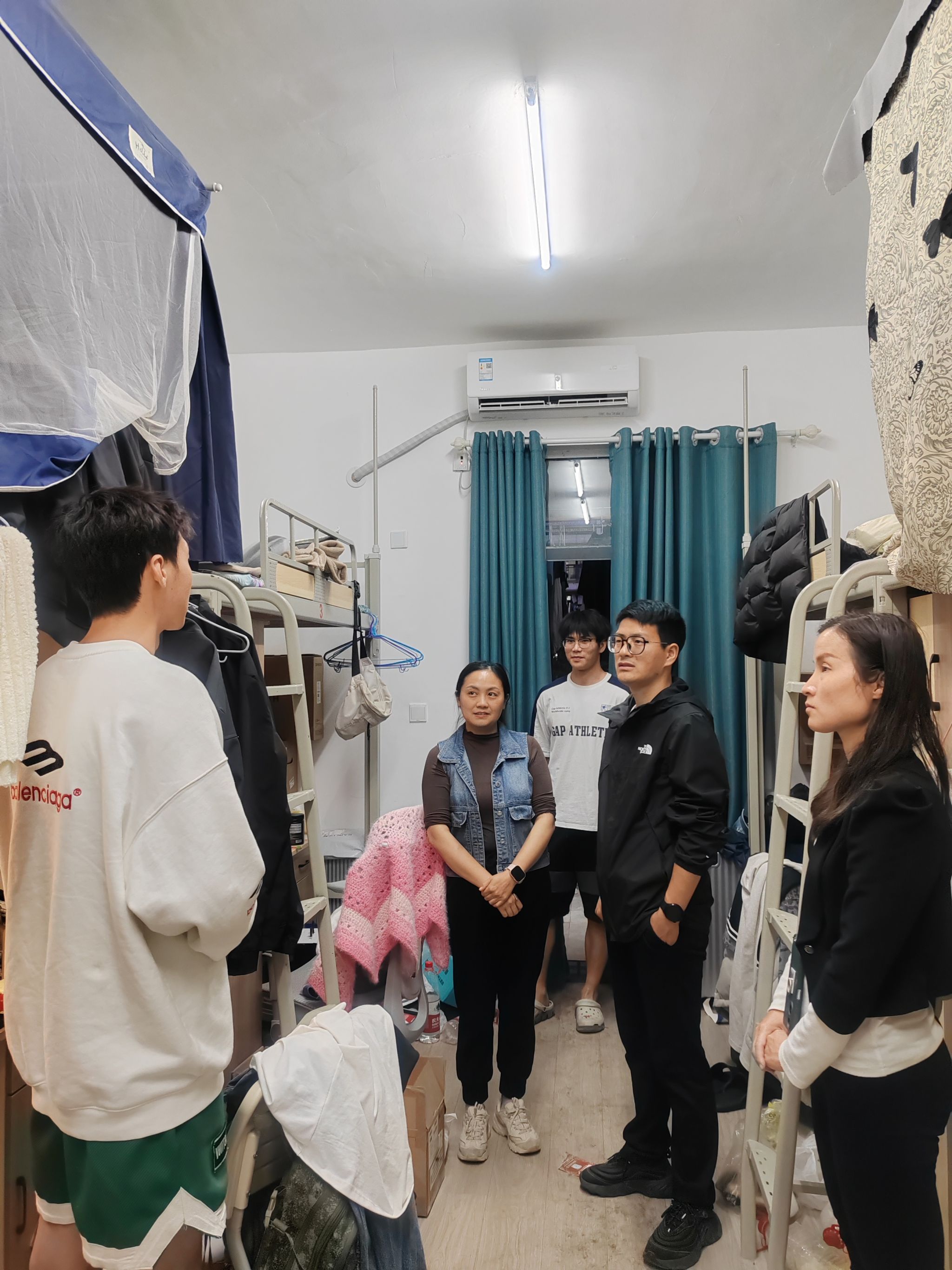 心理健康关怀是此次查寝的重要内容。辅导员老师们以轻松亲切的方式与同学们围坐交谈,从课程学习压力、人际关系处理,到未来职业规划、家庭情感困扰,话题涵盖学生生活的方方面面。对于性格内向、不善表达的同学,辅导员老师主动拉近与学生的距离,用温暖的话语引导他们敞开心扉,分享内心的感受与困惑。对于情绪波动较大或存在心理困惑的学生,辅导员老师们及时给予心理疏导和支持,并建立重点关注学生台账,后续将持续跟进,提供必要的帮助,确保每一位学生都能保持积极向上的心态。