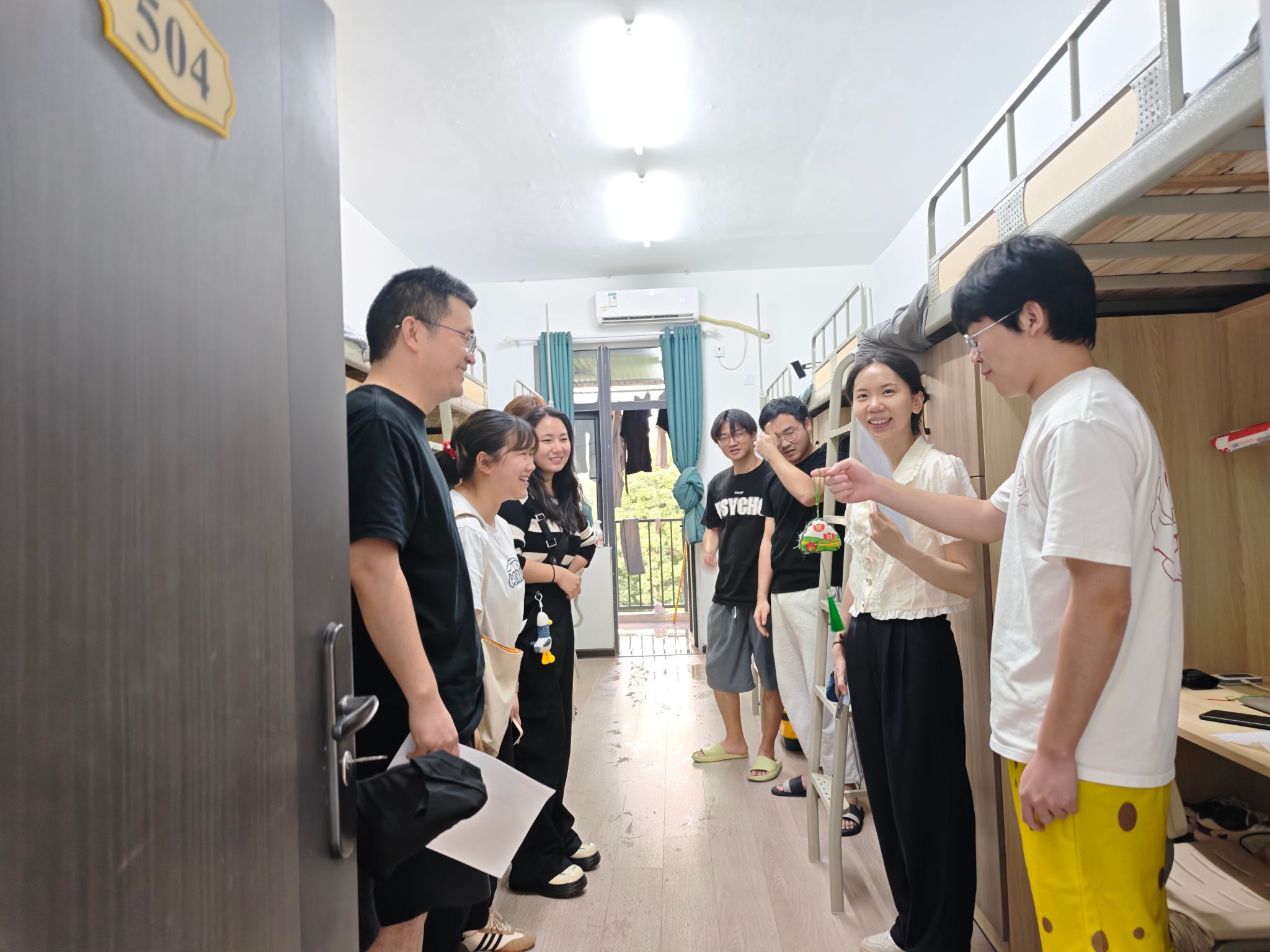 为深入贯彻落实校园安全教育工作,进一步增强学生防溺水安全意识,杜绝溺水事故发生,通信与信息工程学院全体辅导员老师联合学院异科导师代表于5月28日深入学生宿,开展以“走访传情入寝室,防溺筑牢安全堤”为主题的防溺水安全教育查寝活动,将安全知识送进每一间宿舍,为学生生命安全保驾护航。