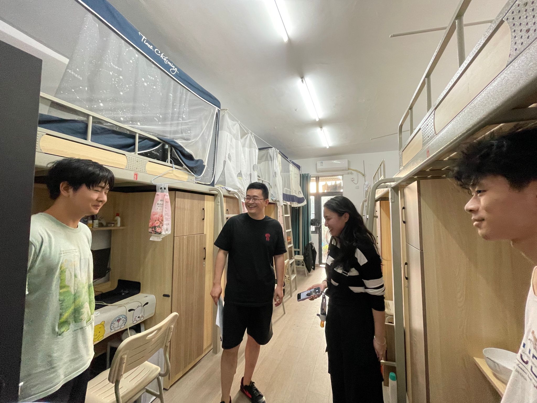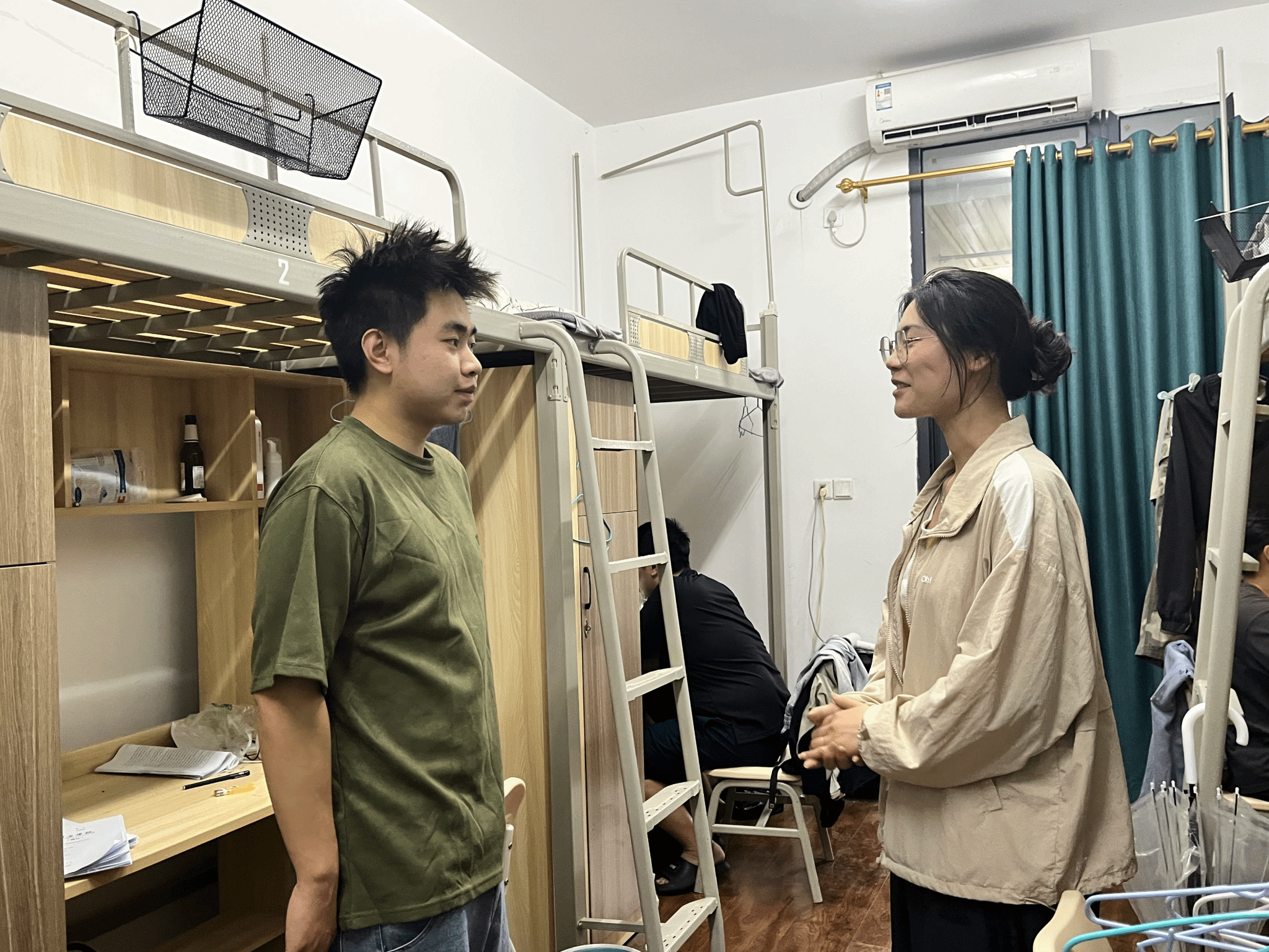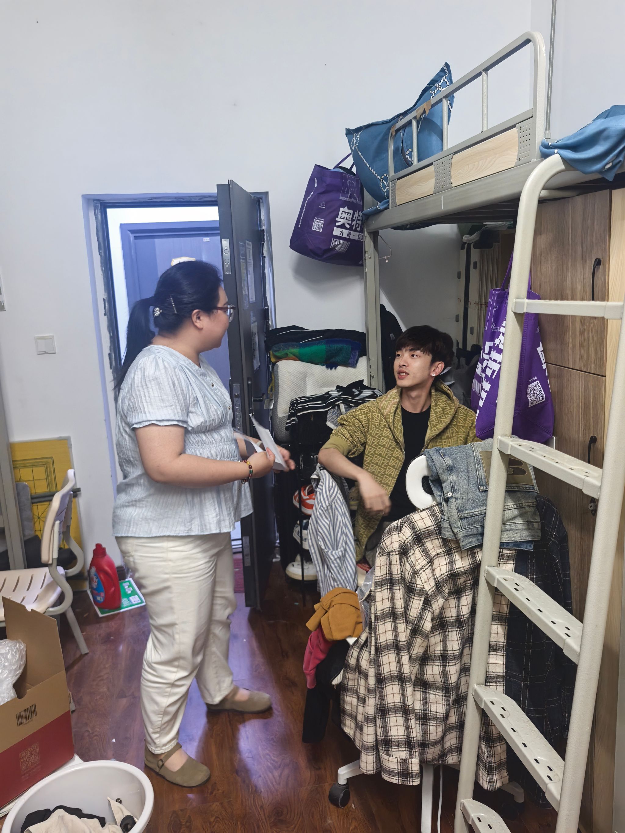 走访寝室过程中,辅导员老师们以拉家常的方式与同学们亲切交流,详细询问同学们近期的学习、生活情况。随后,围绕防溺水安全主题,从溺水高发时段、危险水域类型、溺水危害等方面展开讲解,结合近年来发生的真实溺水案例,用通俗易懂的语言剖析事故发生原因及严重后果,强调私自下水游泳、在无安全设施水域游玩的危险性。同时,老师们还向同学们普及了防溺水“六不准”原则,即不私自下水游泳;不擅自与他人结伴游泳;不在无家长或教师带领的情况下游泳;不到无安全设施、无救援人员的水域游泳;不到不熟悉的水域游泳;不盲目下水施救,引导同学们树立“生命至上、安全第一”的理念。