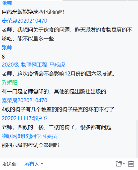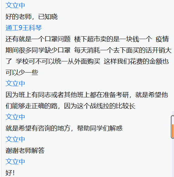 通过此次云端座谈会,同学们积极踊跃地就课堂教学、教室设备、教学教材、学生管理等方面发言,老师们收到了良好的信息反馈,进一步加强了学生与学院之间的沟通交流,促进了良好的学风建设,对不断提升教学管理水平、提高人才培养质量、推动学院发展建设起到了积极作用。相信通信与信息工程学院的全体师生,能够坚定脚步,携手并进,共迎完满。