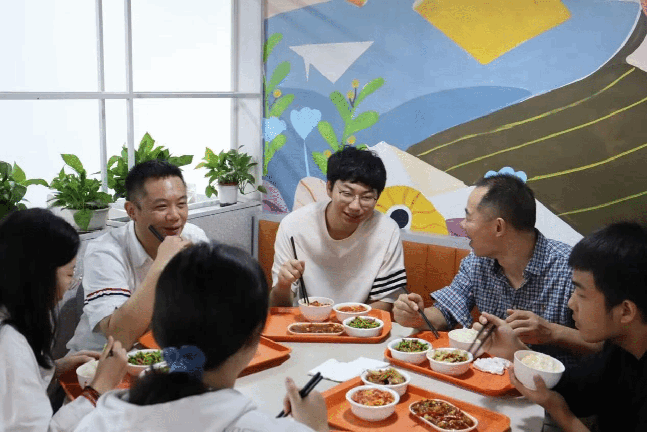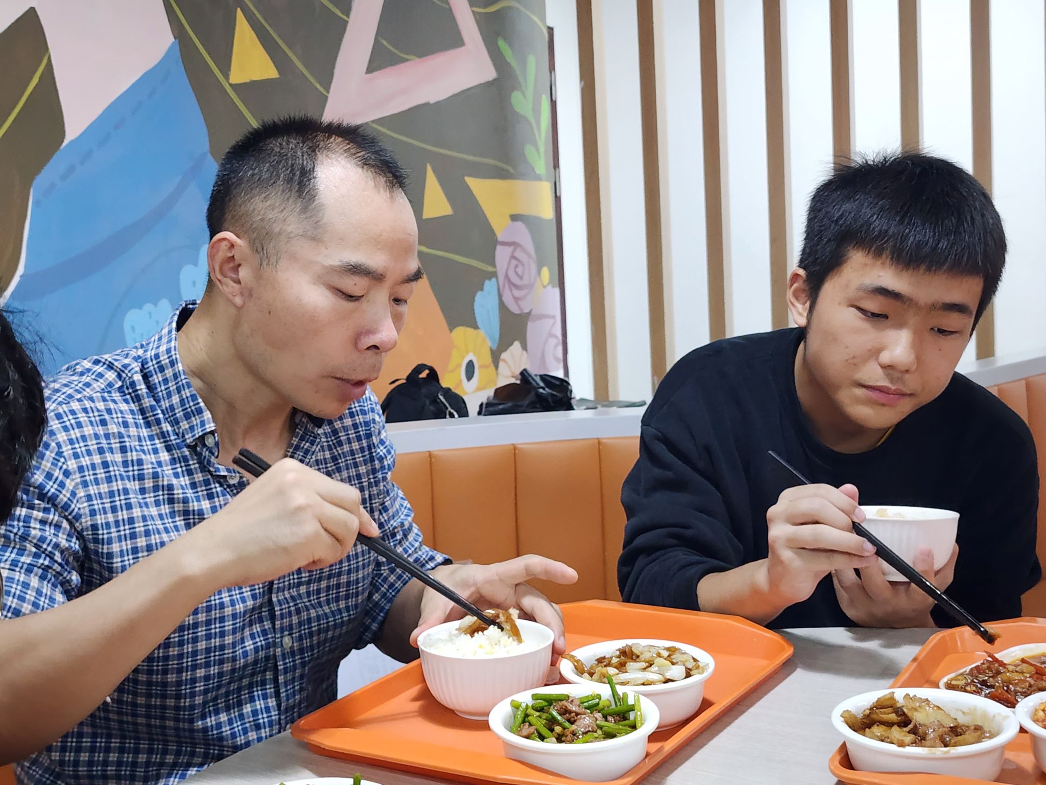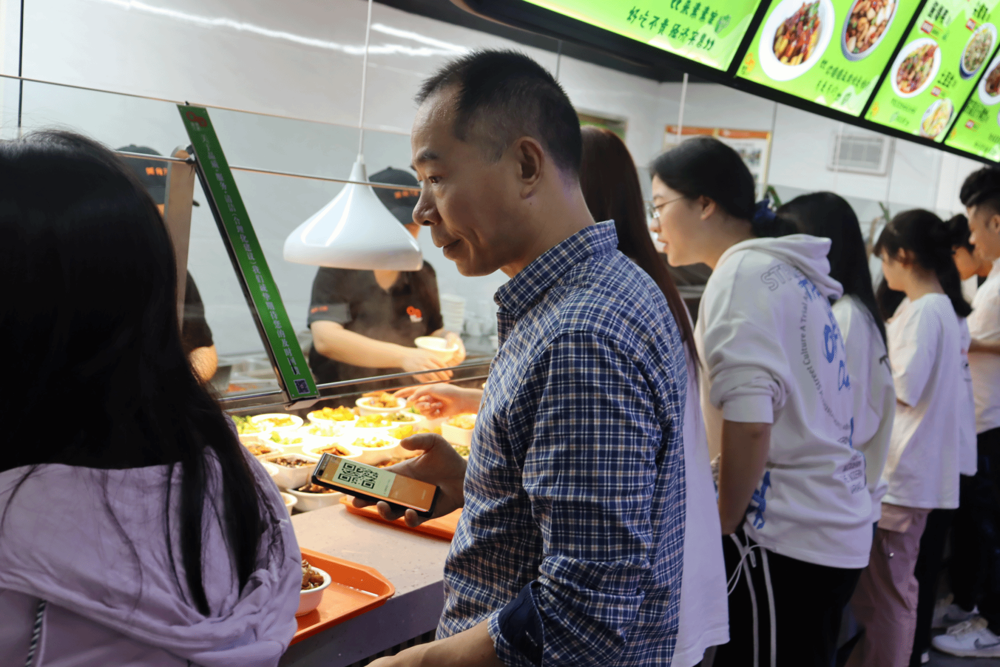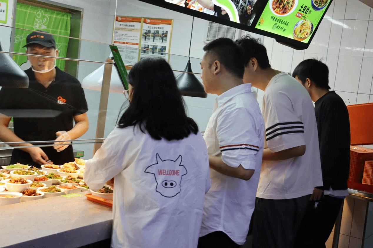 刚与同学们见面,王院长先简单介绍了自己,在与同学们寒暄两句之后,便带领同学们一起去窗口打饭,同时了解一下同学们的用餐环境。在打饭之前,王院长细心询问了同学们的饮食习惯,最后选择同学们都比较感兴趣的小碗菜。在选菜时,王院长照顾到每个同学,尊重每位同学的选择。