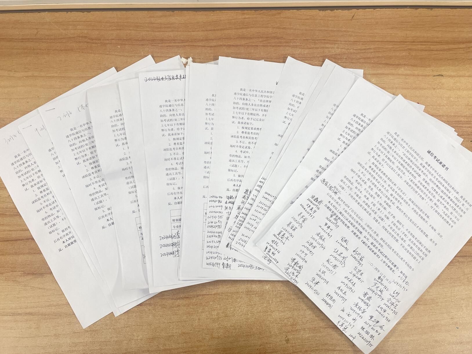 同时通信与信息工程学院积极拓展诚信教育路径,大力倡导全院学生签署诚信考试承诺书。此做法恰似石子投入心湖,让诚信理念深植学生心底,强化其敬畏与诚信意志,从制度与自我约束双层面为学院诚信风气筑牢根基,有力推动了诚信教育走深走实。