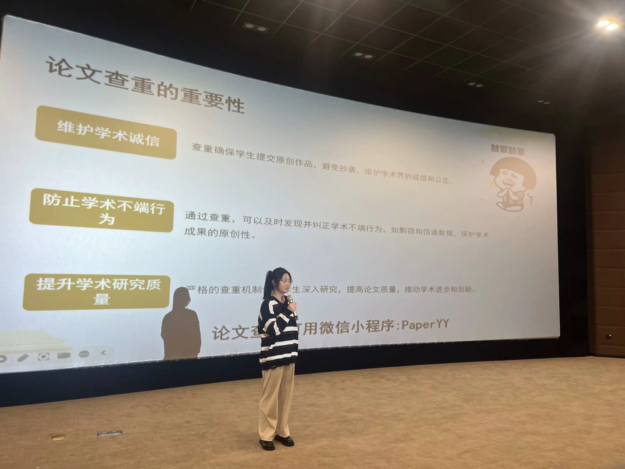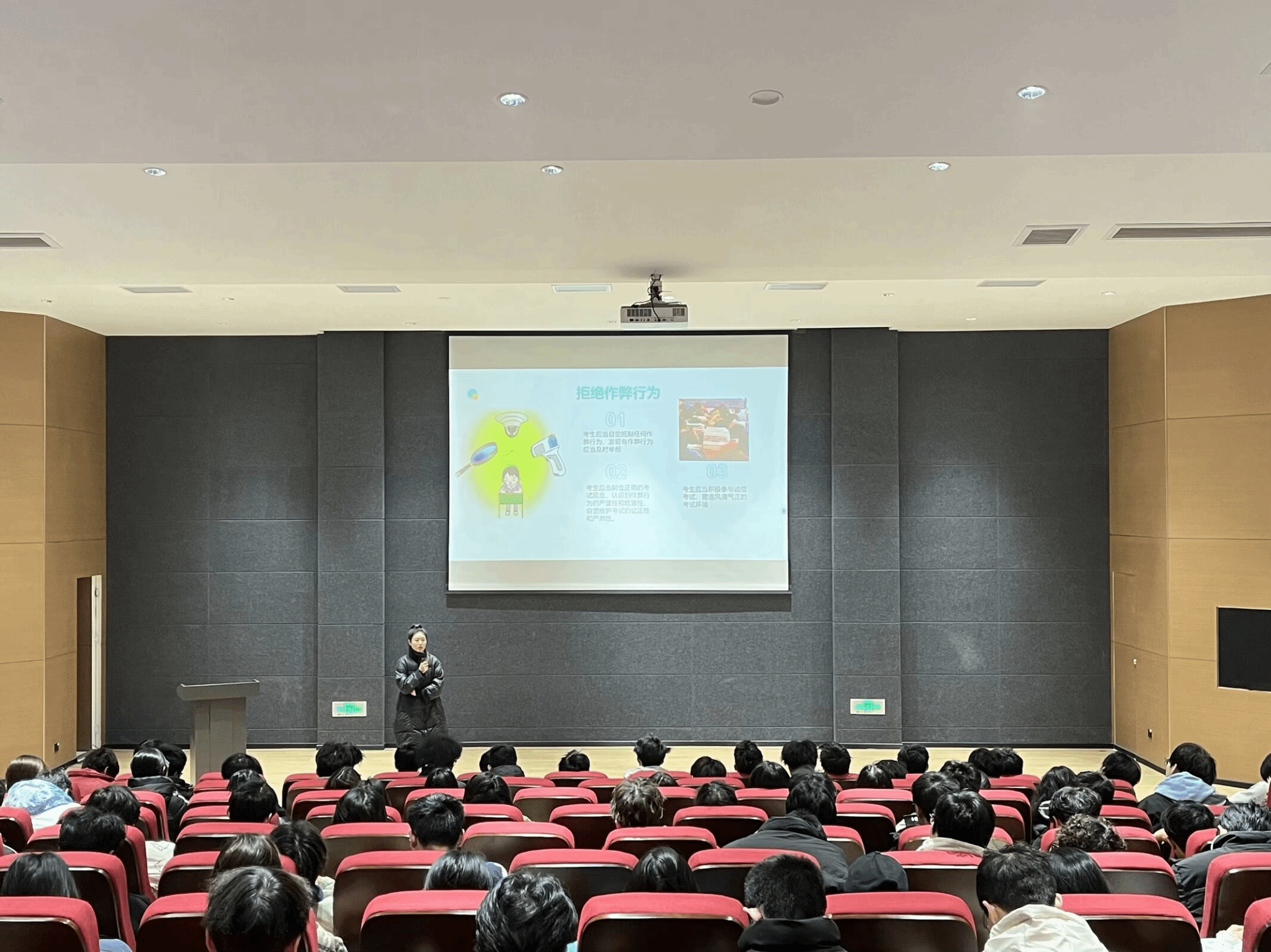 老师们紧紧围绕“诚信为本,立德铸人”这一主题,从多个角度阐述了诚信的重要性。苟凡铖、尹琼瑶等老师从学术诚信方面列举了诸多因学术造假而导致严重后果的真实案例,如某知名学者因论文抄袭被撤销所有学术头衔,以此警示学生们在日常学习、撰写论文以及各类学术活动中,必须坚守诚信底线。段沛言老师通过诚信猜猜猜等游戏互动环节,让学生们在欢声笑语中将诚信理念悄然铭记于心,实现了趣味知识与诚信教育的有机融合。王艺、李林燕等老师则通过主题情景剧生动展现诚信问题,引发同学对诚信的深入思考,并对考试作弊背后隐藏的心理问题进行展示与分析,有力推动了诚信学风建设。