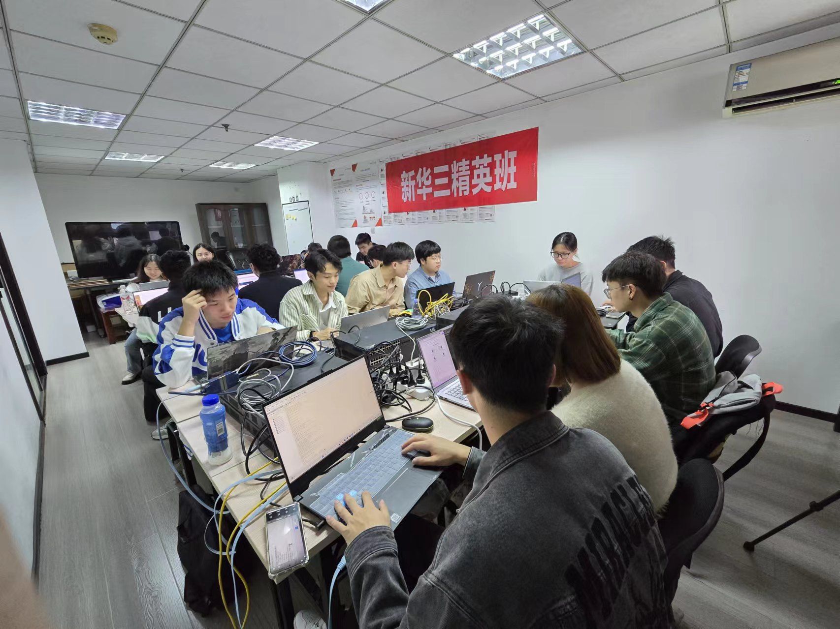 自开班仪式后,新华三精英班的学生们便满怀憧憬地踏上了持续学习的征程。他们以满腔热忱和高度专注投入到课程学习之中,积极与老师互动交流,踊跃参与课堂讨论和实践操作。在这个充满活力与创新的学习环境中,学生们如饥似渴地汲取着知识的养分,不断提升自己的专业素养。